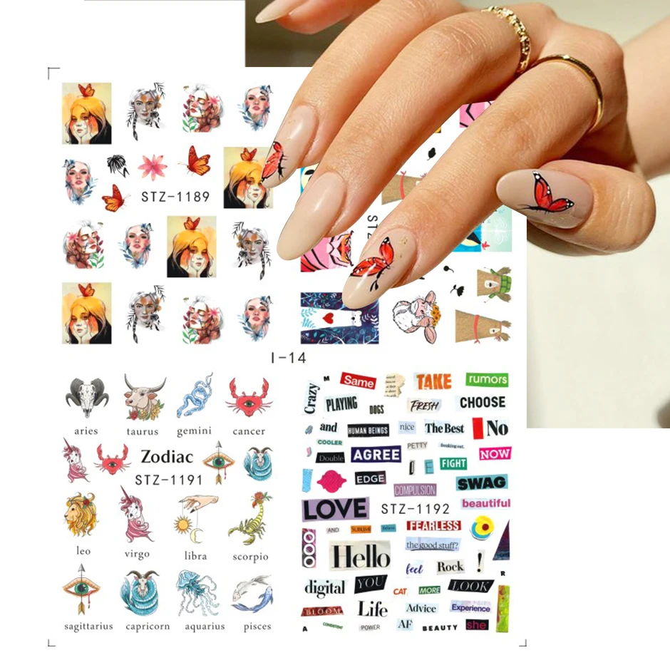 Набор для дизайна ногтей, 4 в 1, летние наклейки для ногтей с изображением листьев и фруктов, Слайдеры для гель-лака, маникюрные Типсы CHI01-19