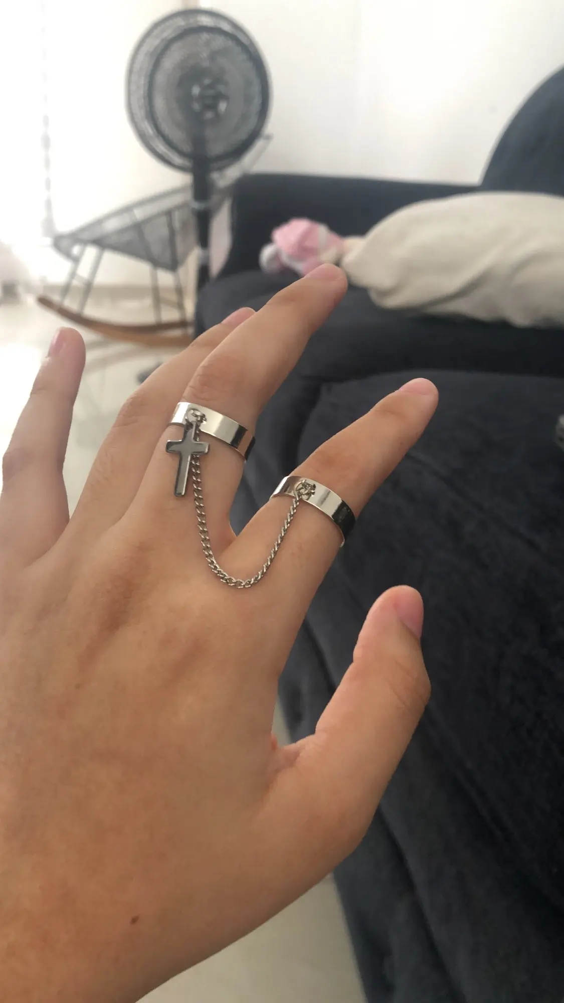 Регулируемое кольцо с перекрестной цепочкой для мужчин и женщин, винтажное комбинированное кольцо на палец в стиле хип-хоп, панк, праздничная бижутерия с кольцами