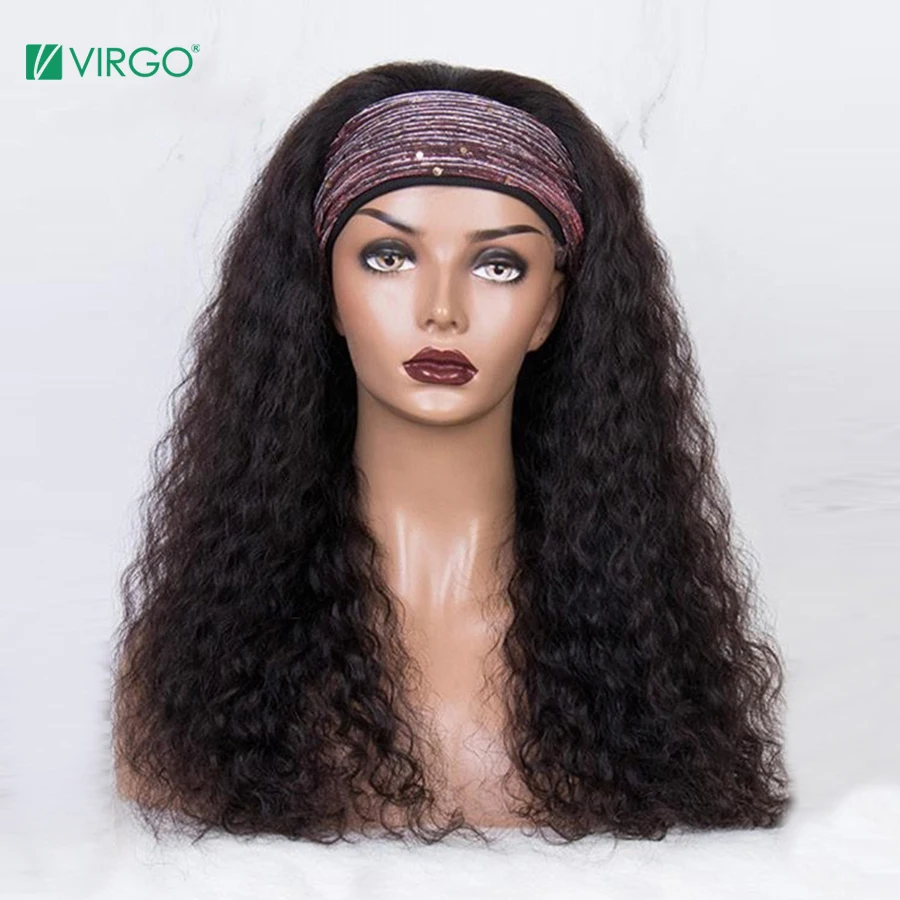 Афро кудрявый парик 180% плотность человеческих волос парик с головной повязкой короткая машина сделанные человеческие волосы парик с повязкой без клея Remy