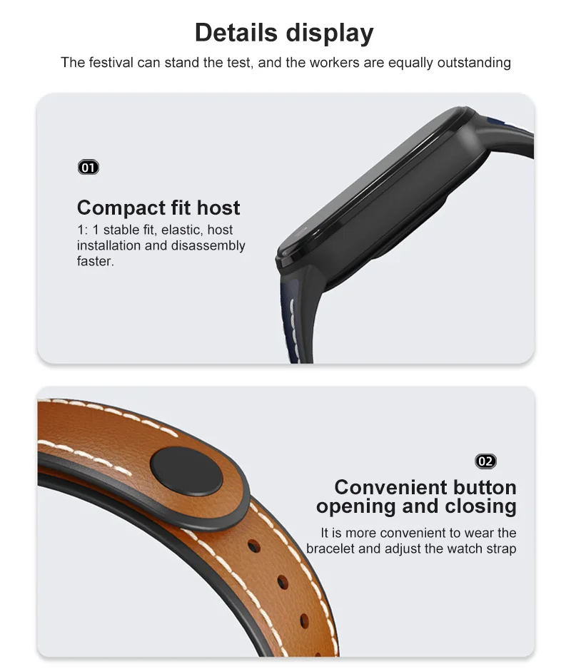 Модный дизайн: этот браслет Mi, Вдохновленный классическим стилем часов, сочетает в себе кожаный ремешок с роскошным корпусом и является стильным украшением для фитнес-трекеров Xiaomi.