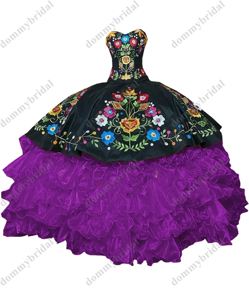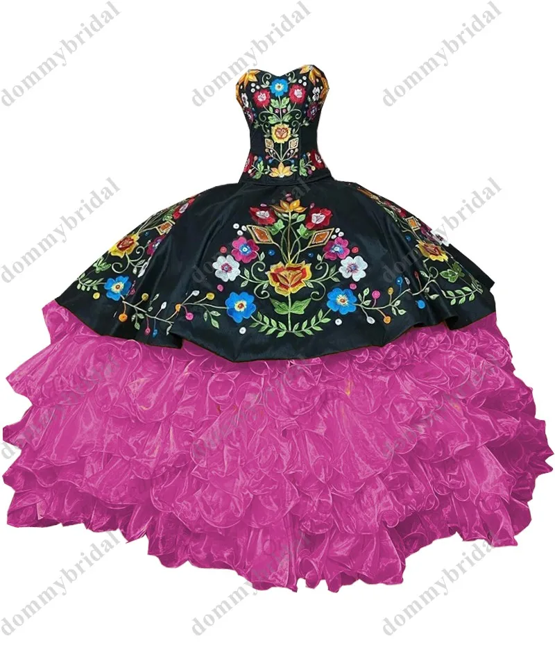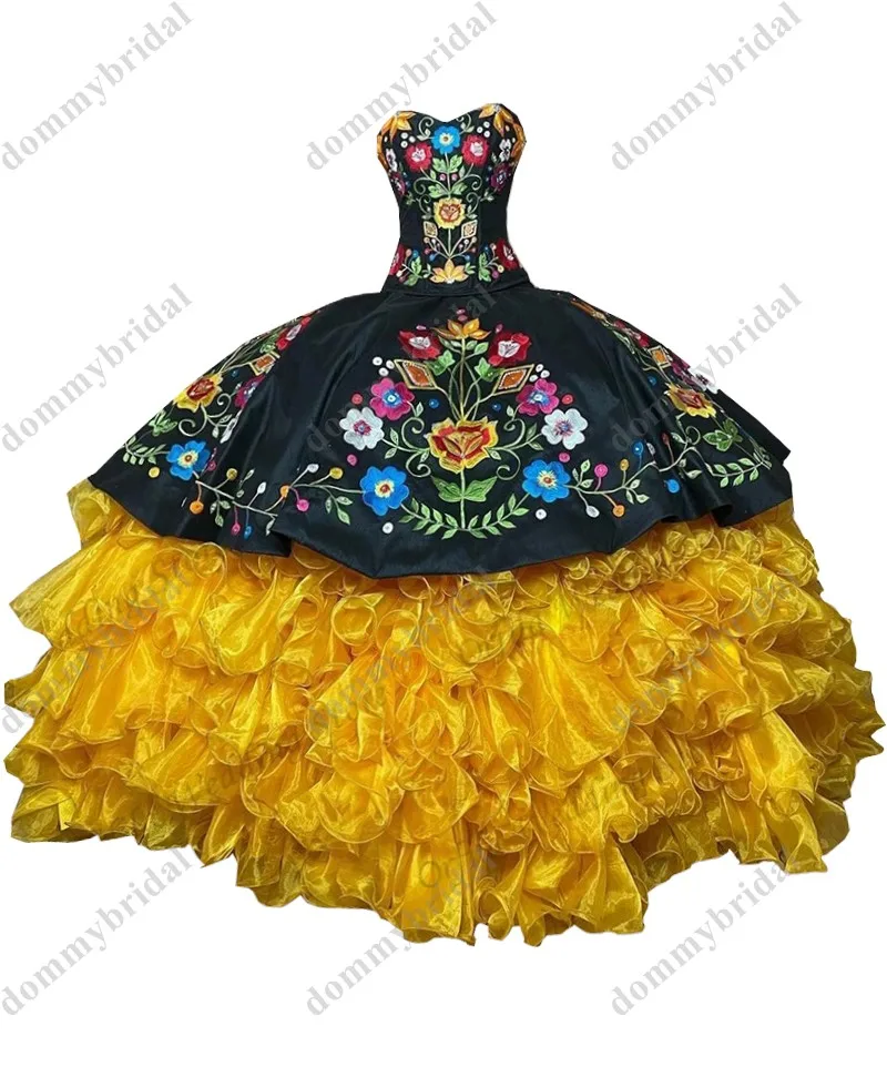Женское бальное платье с рюшами, черное, желтое, Красное Бальное Платье с цветочной вышивкой, для 15, 16, XV лет, 2022