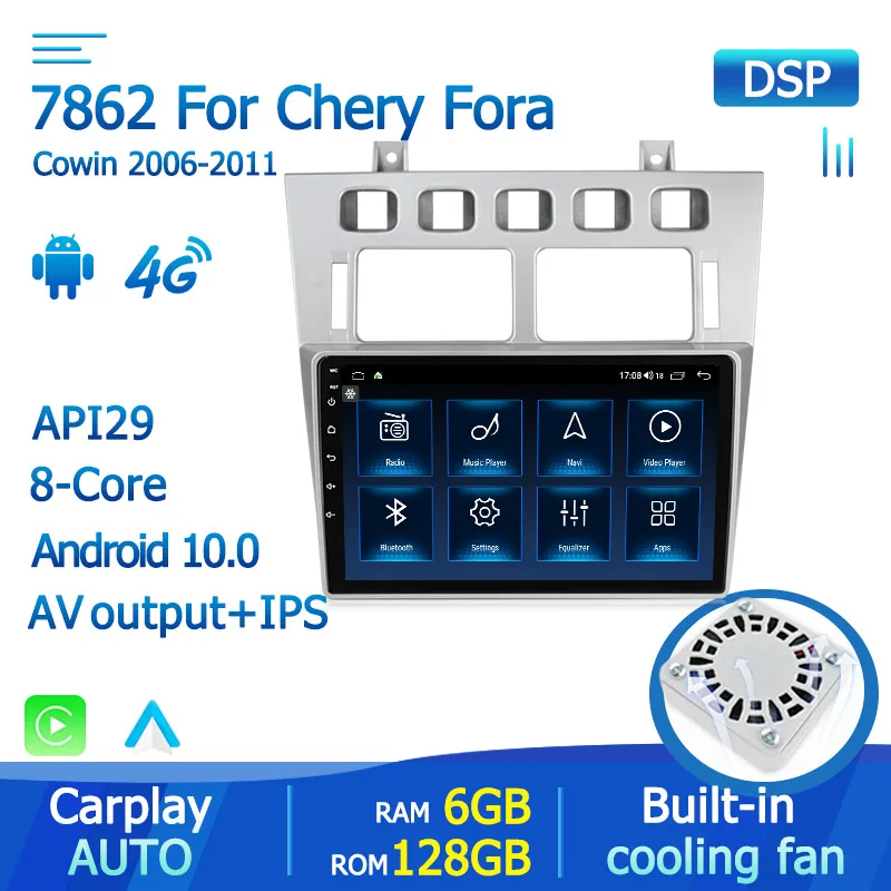 Автомагнитола Carplay, 2 Din, Android 10,0, для Chery Fora Cowin 2006 - 2011