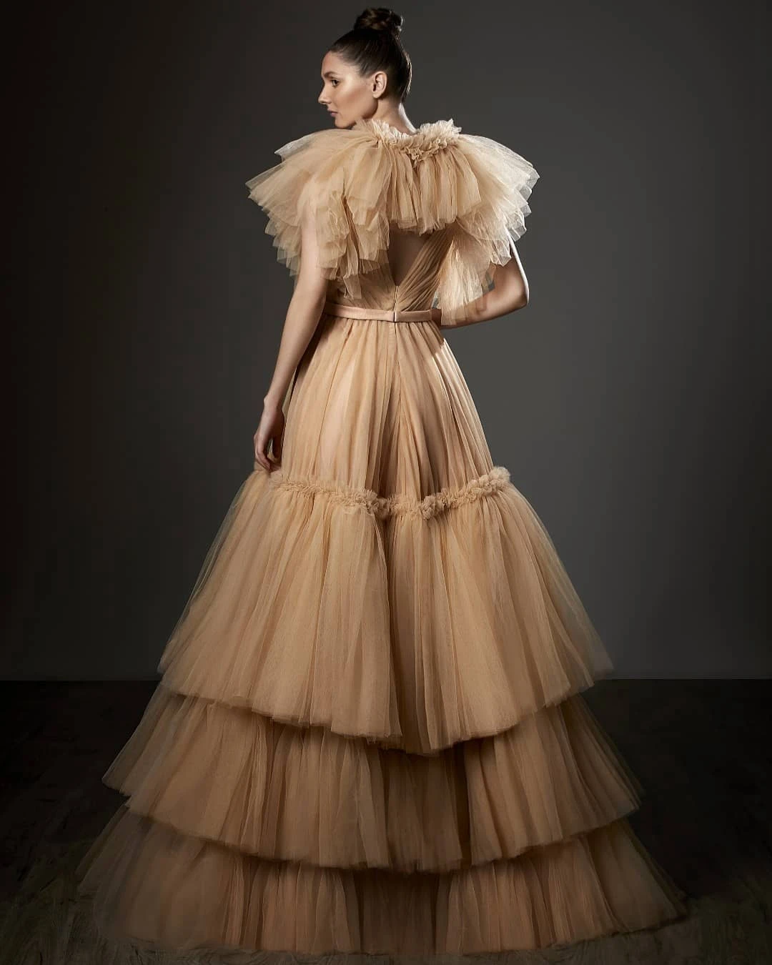Пышные многоярусные тюлевые женские платья, охотничьи зеленые плать...