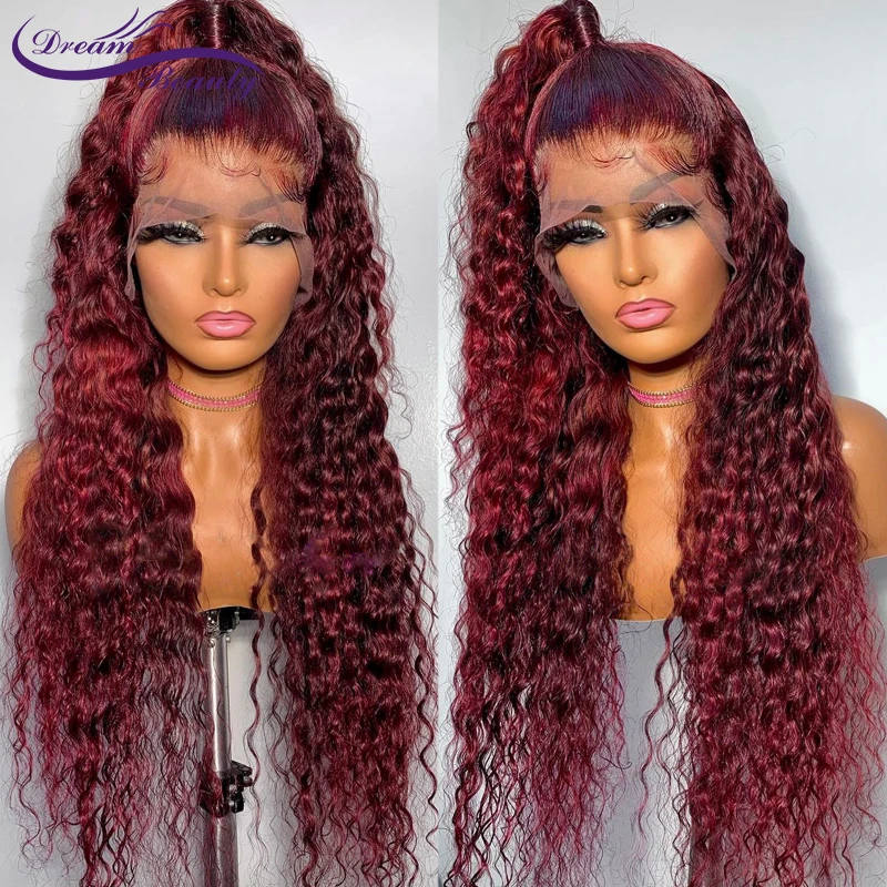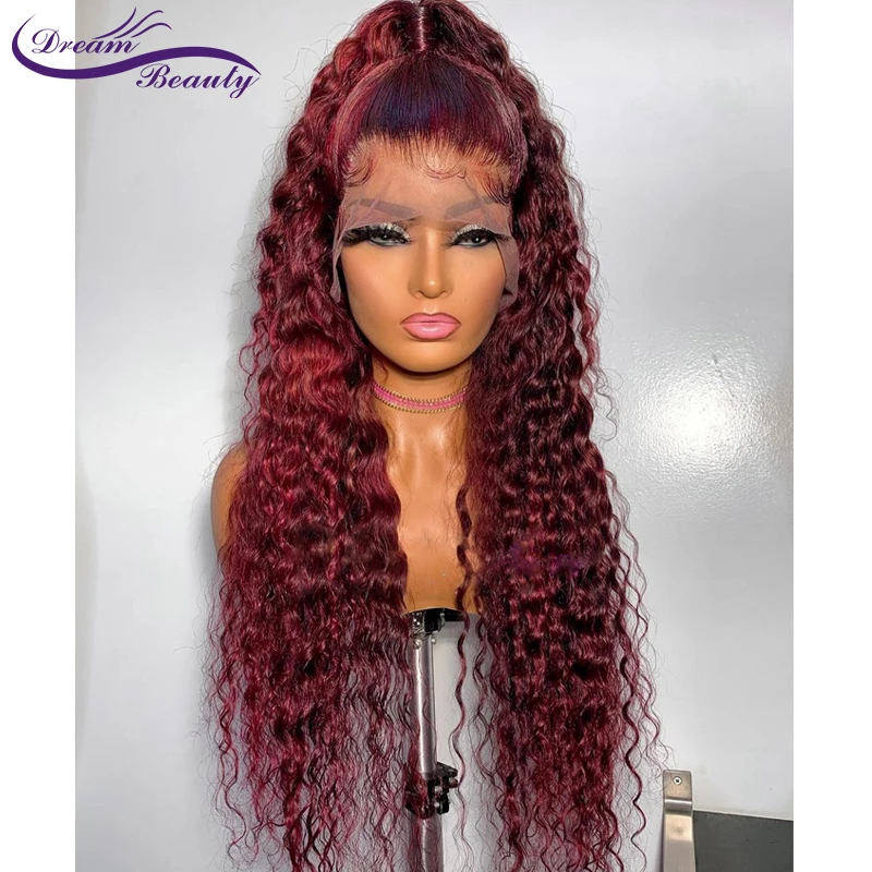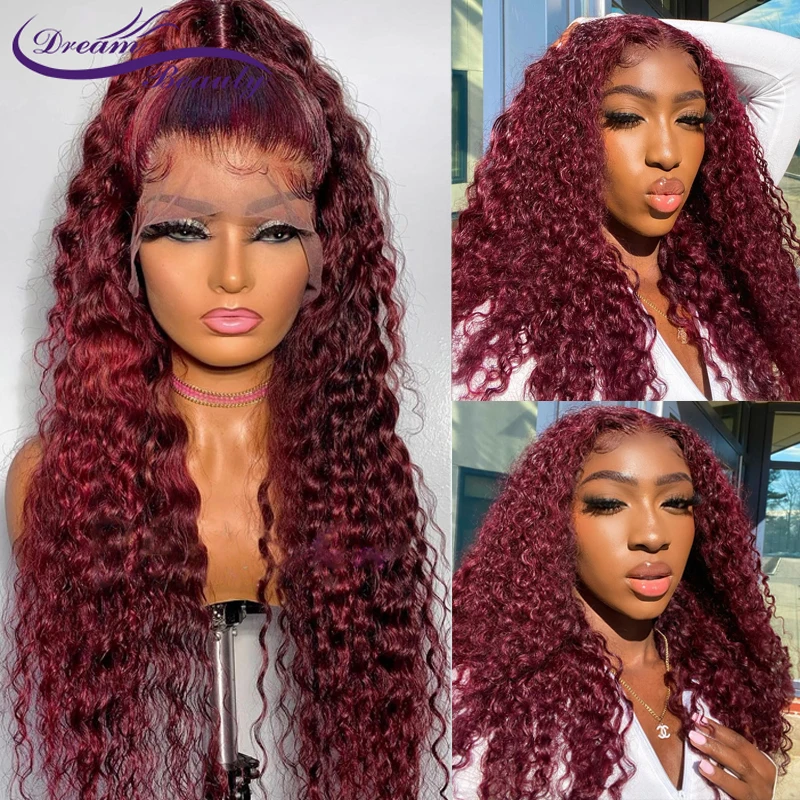 Бордовые # 99J вьющиеся человеческие волосы для женщин, предварительно выщипанные 13x4 человеческие волосы на шнурке, парики 4x4, бразильские волосы Remy