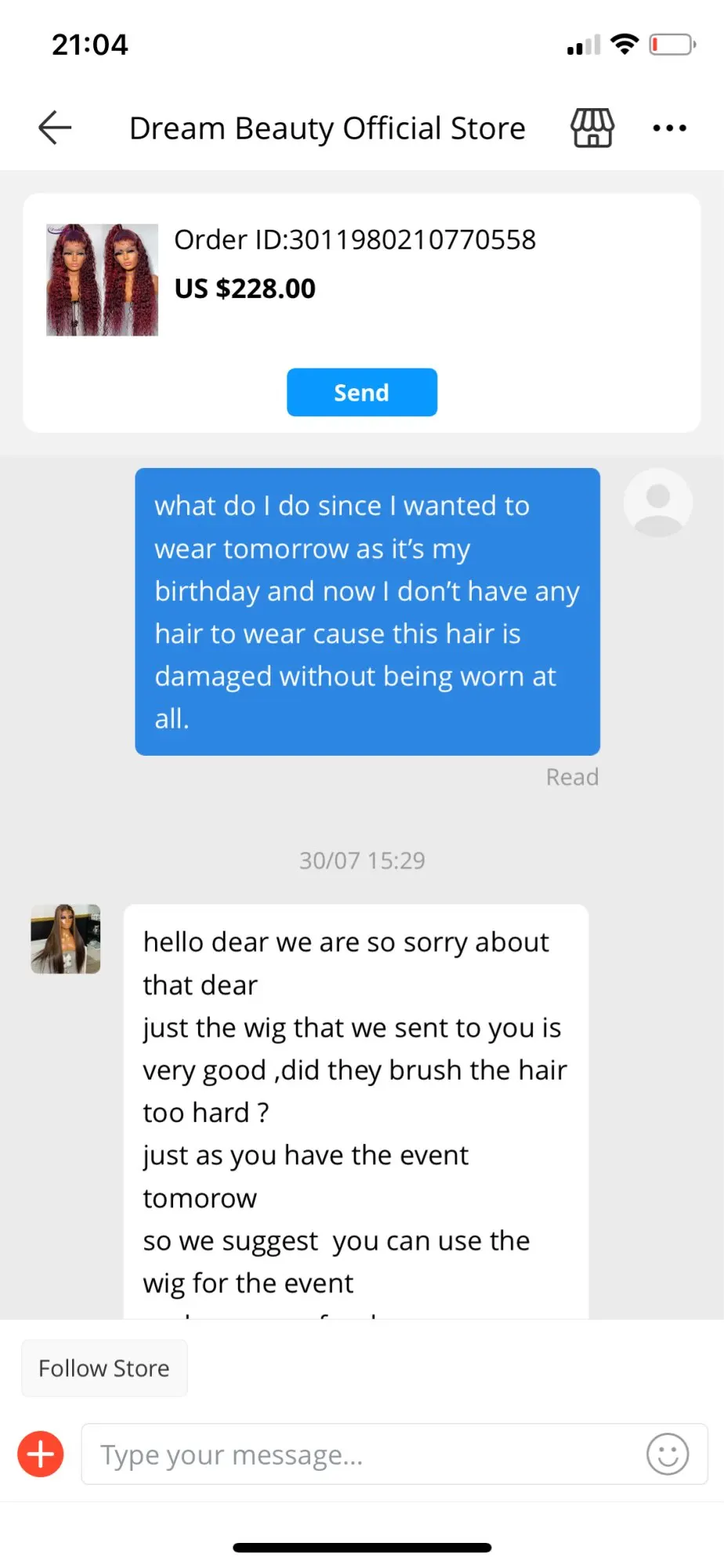 Listen this hair company is the best!they are very professional, the seller is amazing the wigs are worth the money this is the only company I will be buying all my wigs from, this wig is the best! tell all your friends and family members they will never be disappointed! its beautiful thank you Dream Beauty!