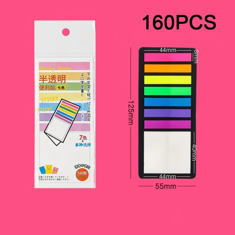 Цветные прозрачные флуоресцентные указатели, 160 шт., 300 заметок д...