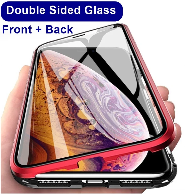Магнитный чехол с двойным стеклом для iPhone 8 7 6 Plus SE X XR XS ...