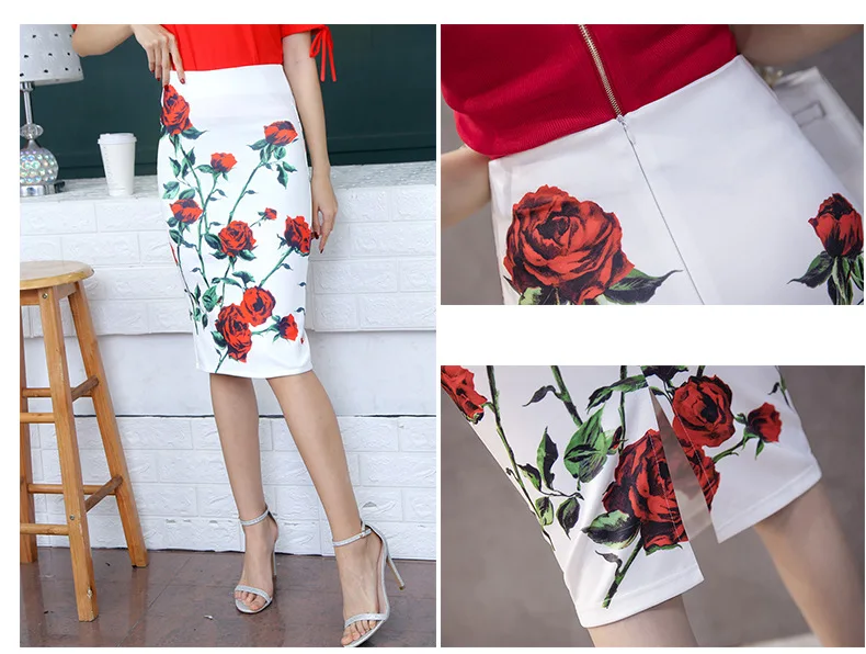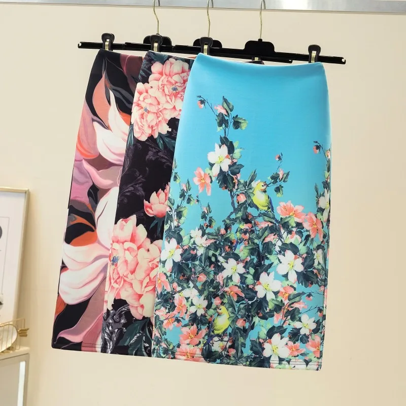 Юбка-карандаш женская с завышенной талией, модная офисная миди-юбка с синим цветочным принтом, лето 2022