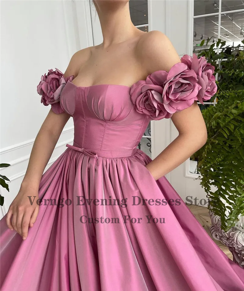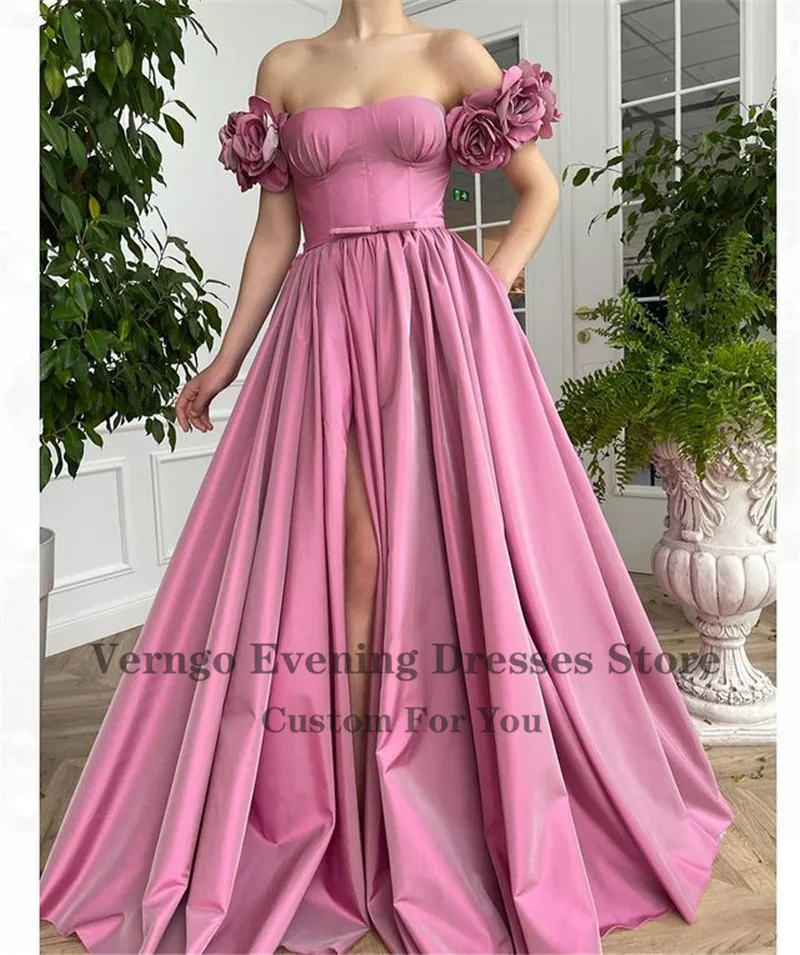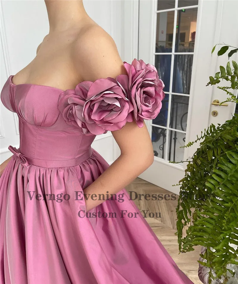 Verngo 2021 новый дизайн пыльно-розовые вечерние платья из тафты милое 3D Короткие рукава разрез по бокам длина до пола платье для выпускного вечера