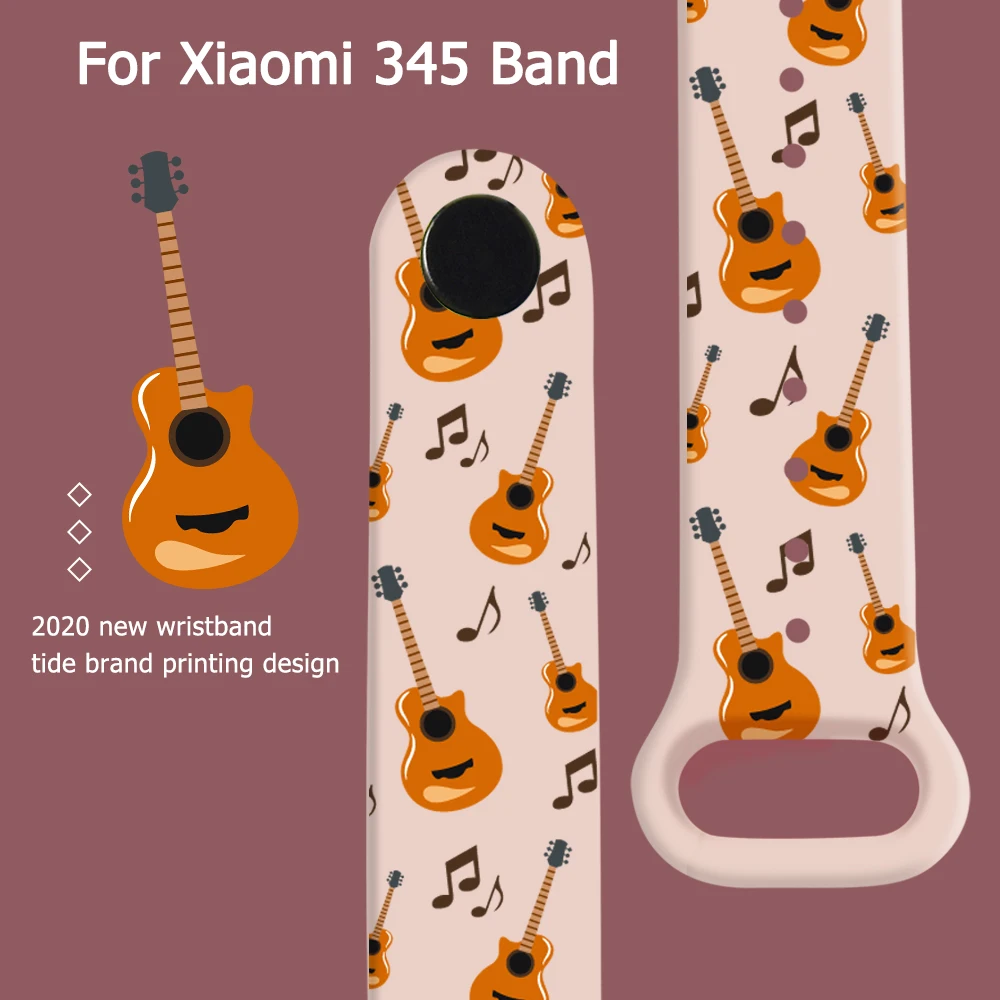 Гитарный ремешок для Xiaomi Mi Band 6 5 4 3 сменный Браслет Мультяшные силиконовые браслеты для xiaomi band 65 MiBand 6 5 4 3