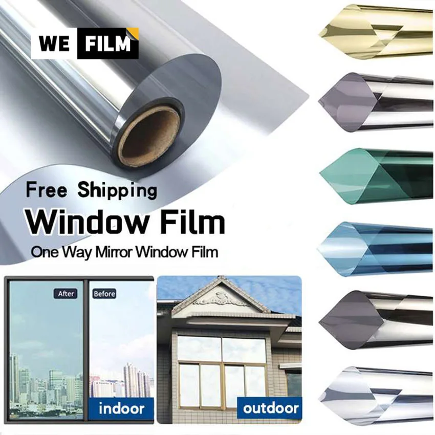 Наклейка на окно, декоративная пленка, серебристая Антибликовая Зеркальная Наклейка, виниловая фольга, 405060 см, Тонирующая Тонировочная пленка для гостиной