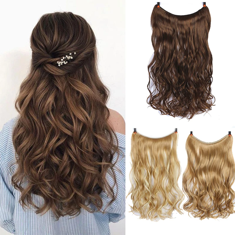Синтетические невидимые волосы XUANGUANG, 24 дюйма, без зажима, для наращивания волос на леске, волнистые волосы, женские накладные волосы