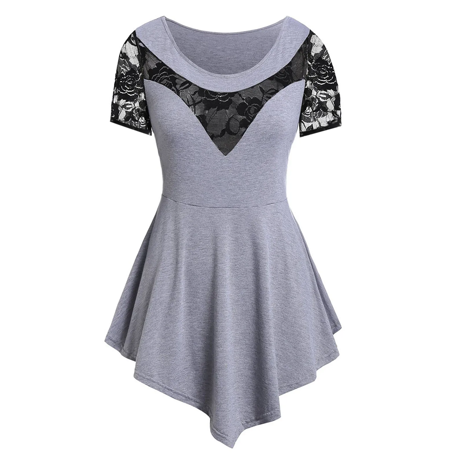 Женский Асимметричный топ, летняя рубашка с цветочным кружевом и круглым вырезом, размера плюс