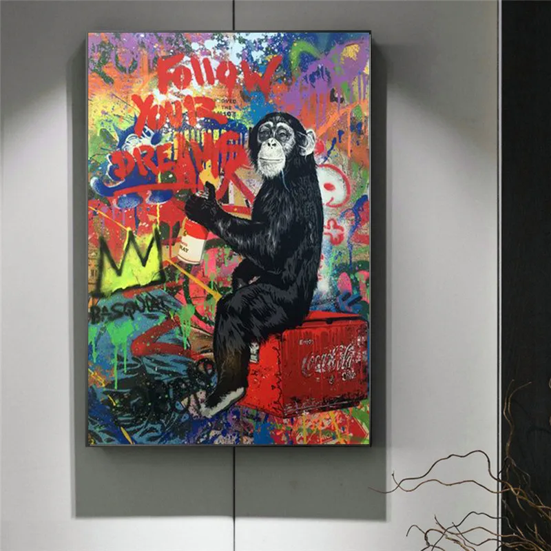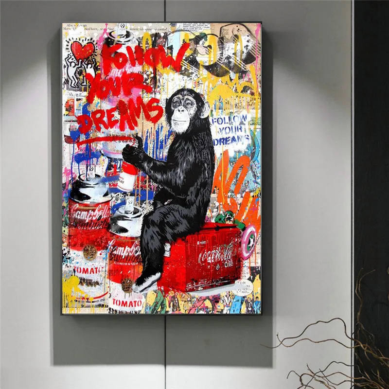 Граффити искусство девушка с воздушным шаром холст живопись абстрактная улица поп фотография стены для украшения дома