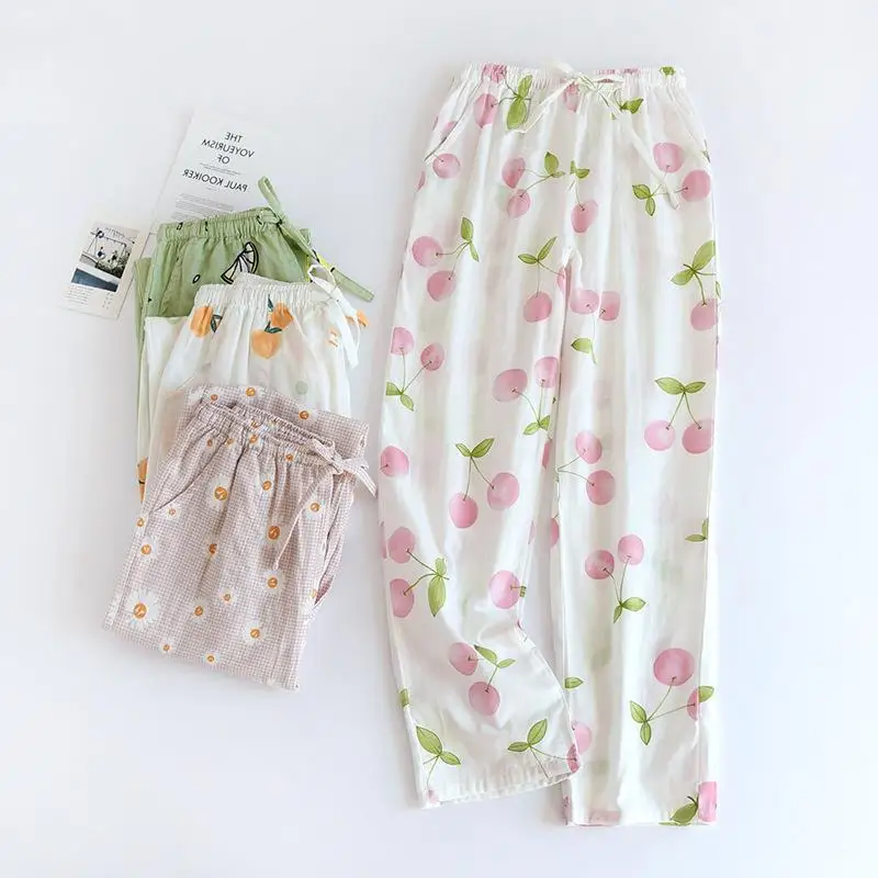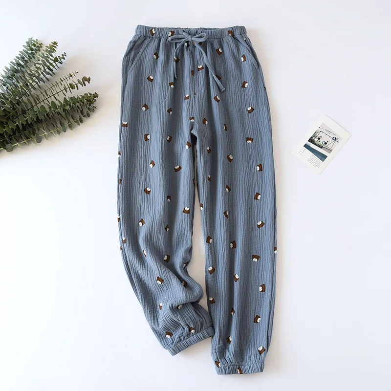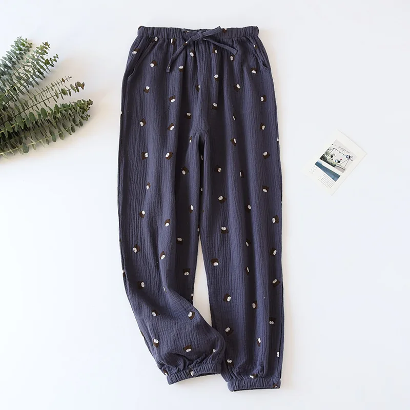 Парные брюки, пижамы, летние хлопковые марлевые шорты, японская Простая Повседневная Пижама с эластичным поясом, домашние штаны большого размера для мужчин и женщин