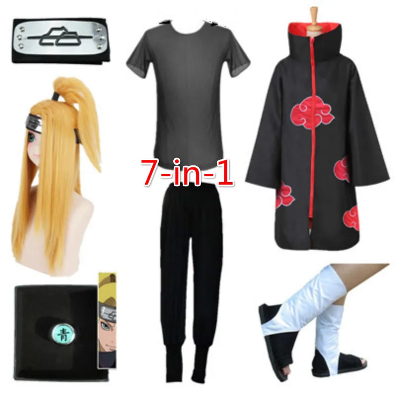 Deidara косплей одежда плащ Акацуки парик Полный Набор косплей костюм мужской косплей костюм s аниме