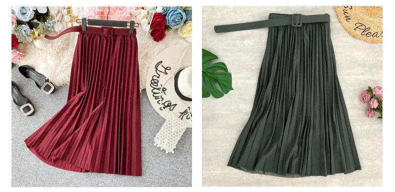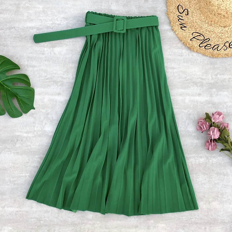 Юбка шифоновая плиссированная трапециевидная до середины икры, плотная Однотонная юбка с пышной драпировкой, Красный Желтый Розовый Синий Зеленый, весна-лето