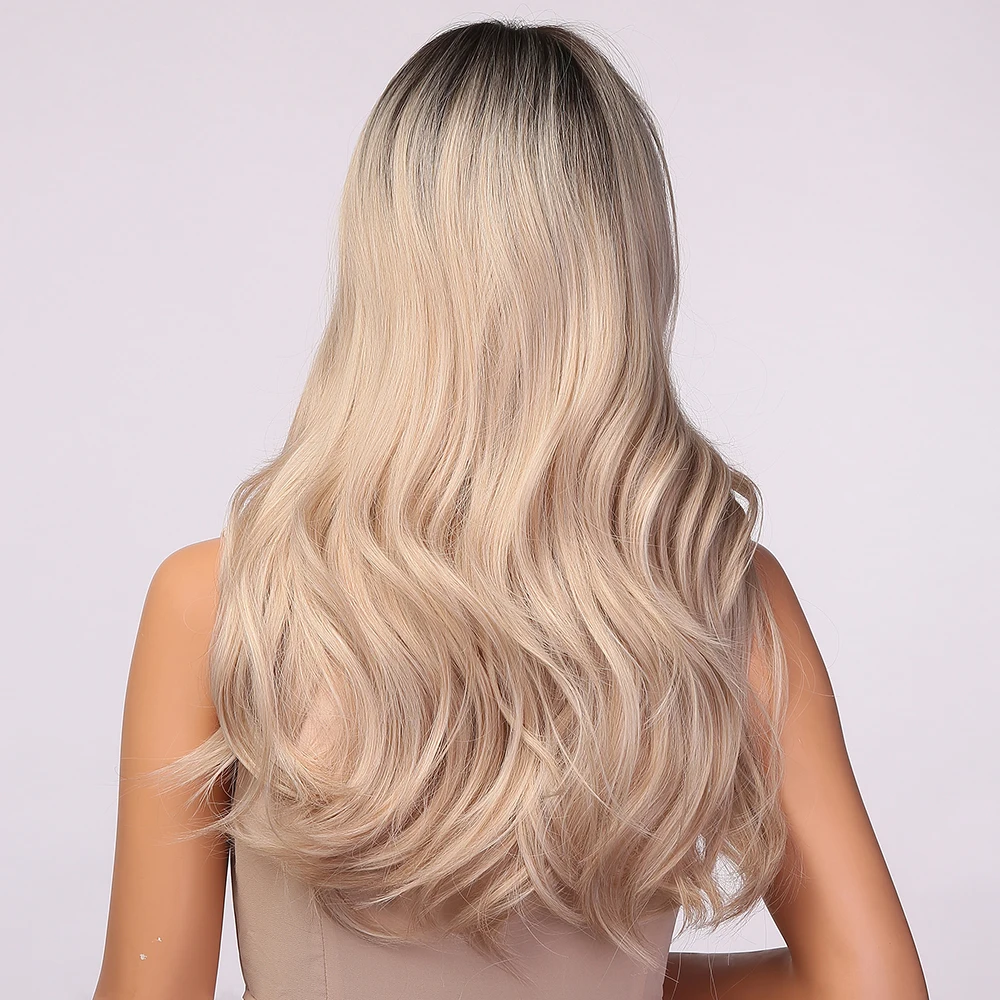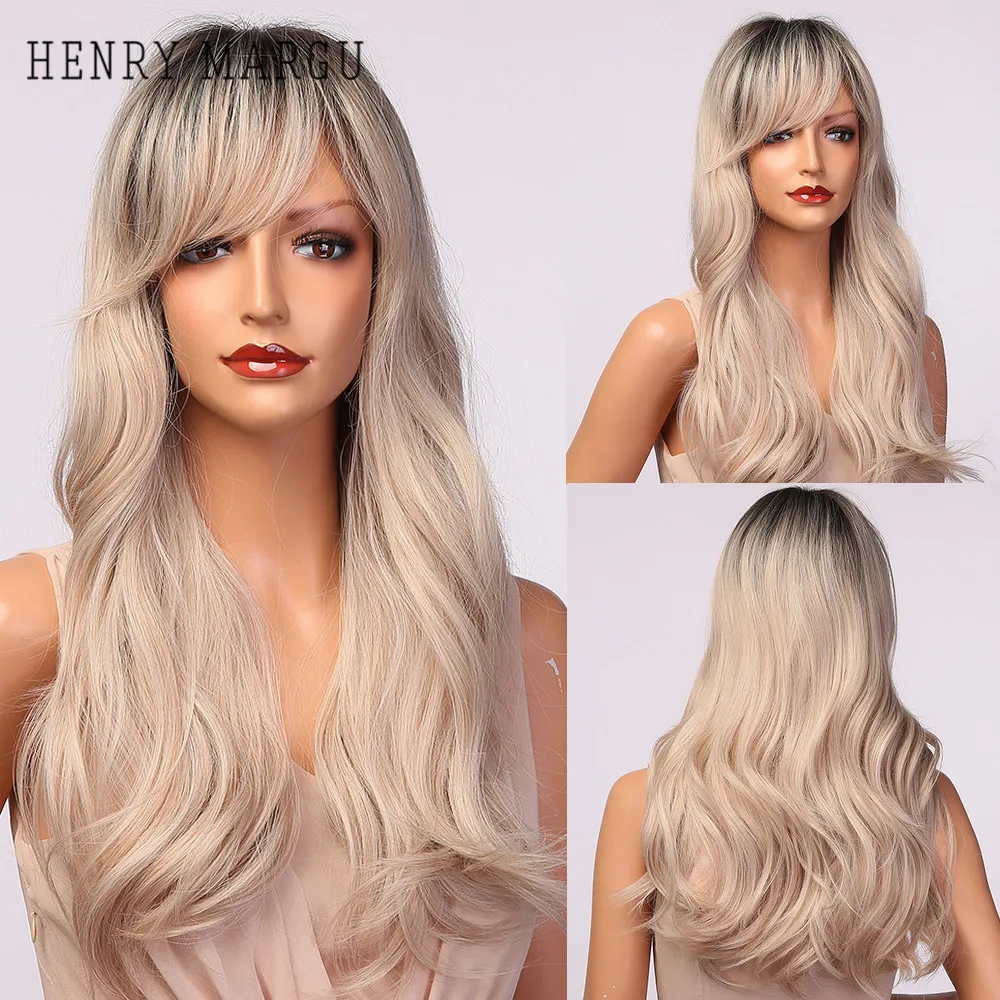 Генри MARGU длинные волнистые светлые черного цвета с эффектом деграде (переход от темного к светлому), парики с челкой натуральные синтетические парики для Для женщин повседневные Косплэй парика, устойчивая к высоким температурам