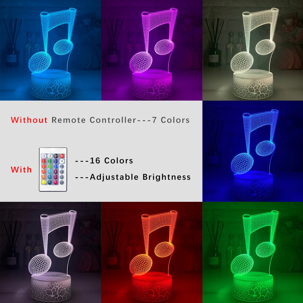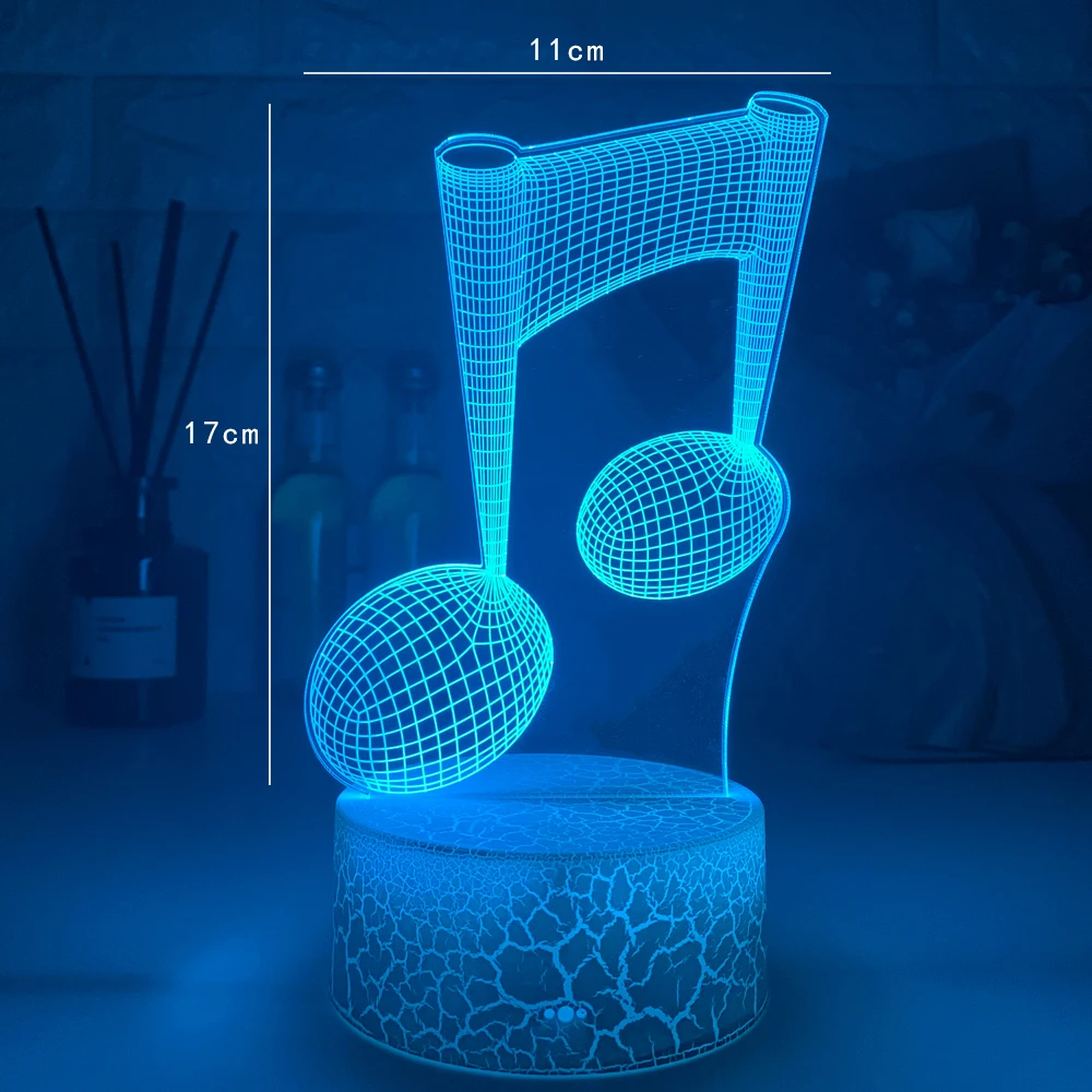 Акриловый ночник с 3d-иллюзией, детский ночник с голограммой в виде музыкальных нот, светодиодный сенсорный датчик, цветной Usb-светильник с питанием от батареи
