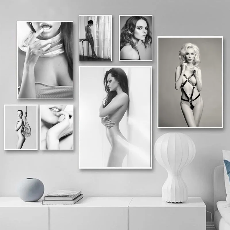 Черные, белые сексуальные губы, леди, настенные художественные плакаты на холсте, картина для курительной девушки и гориллы, ретро фото, модные картины, Декор