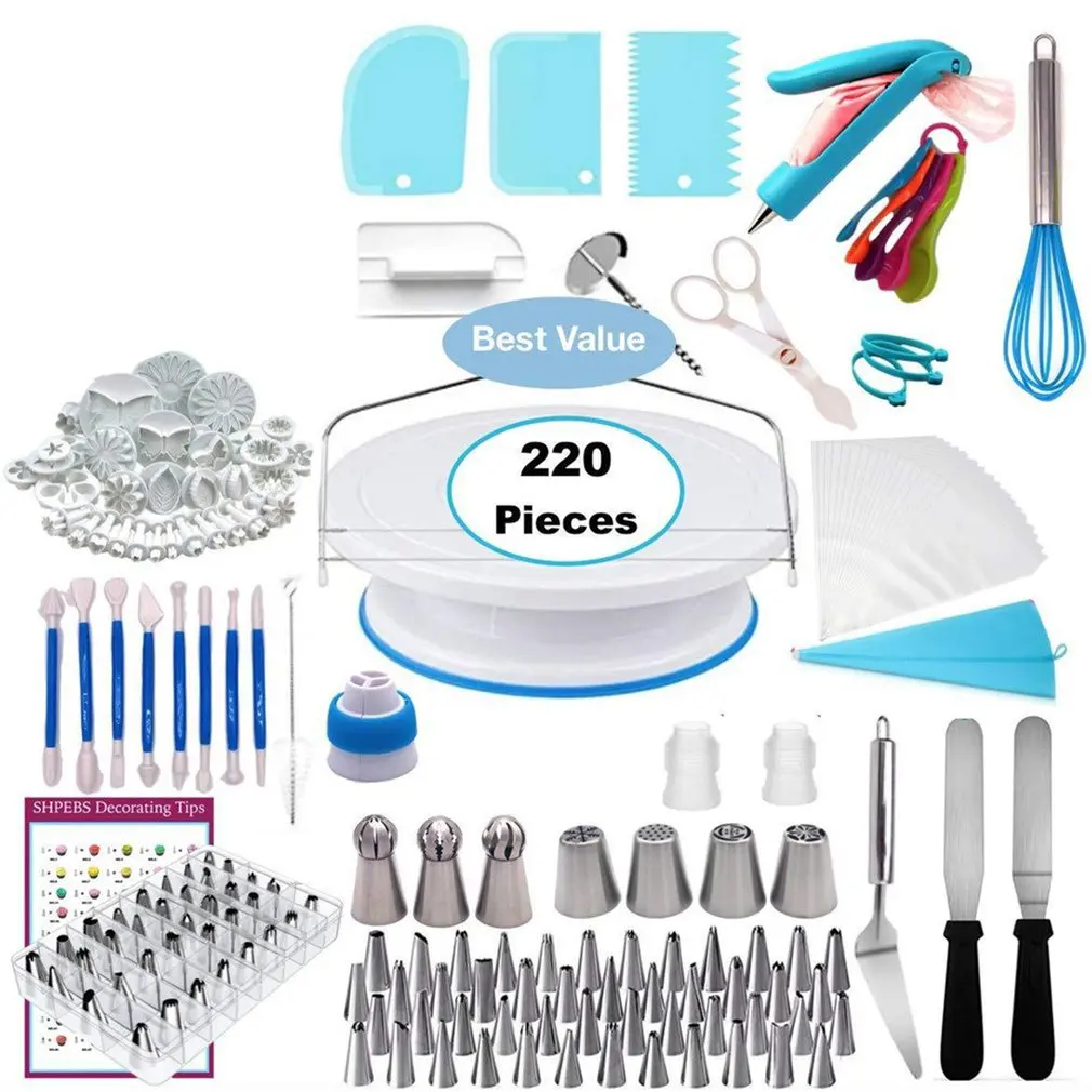 1. Это набор инструментов для украшения торта своими руками из 220 штук, со всеми инструментами для торта для различных форм и украшений, которые вам нужны.