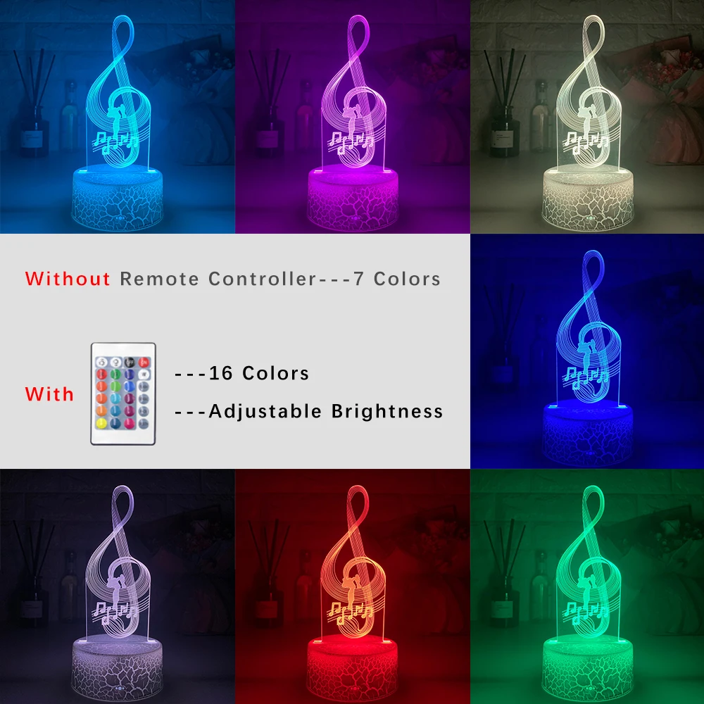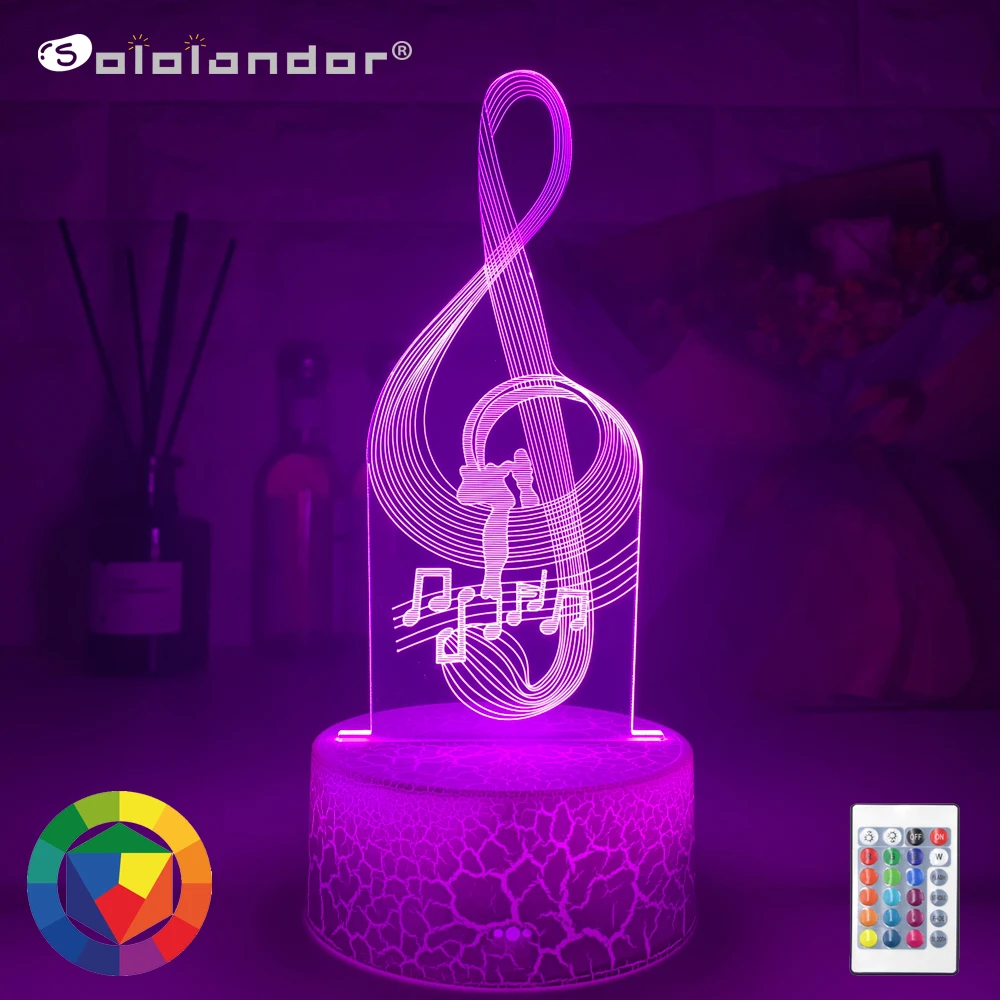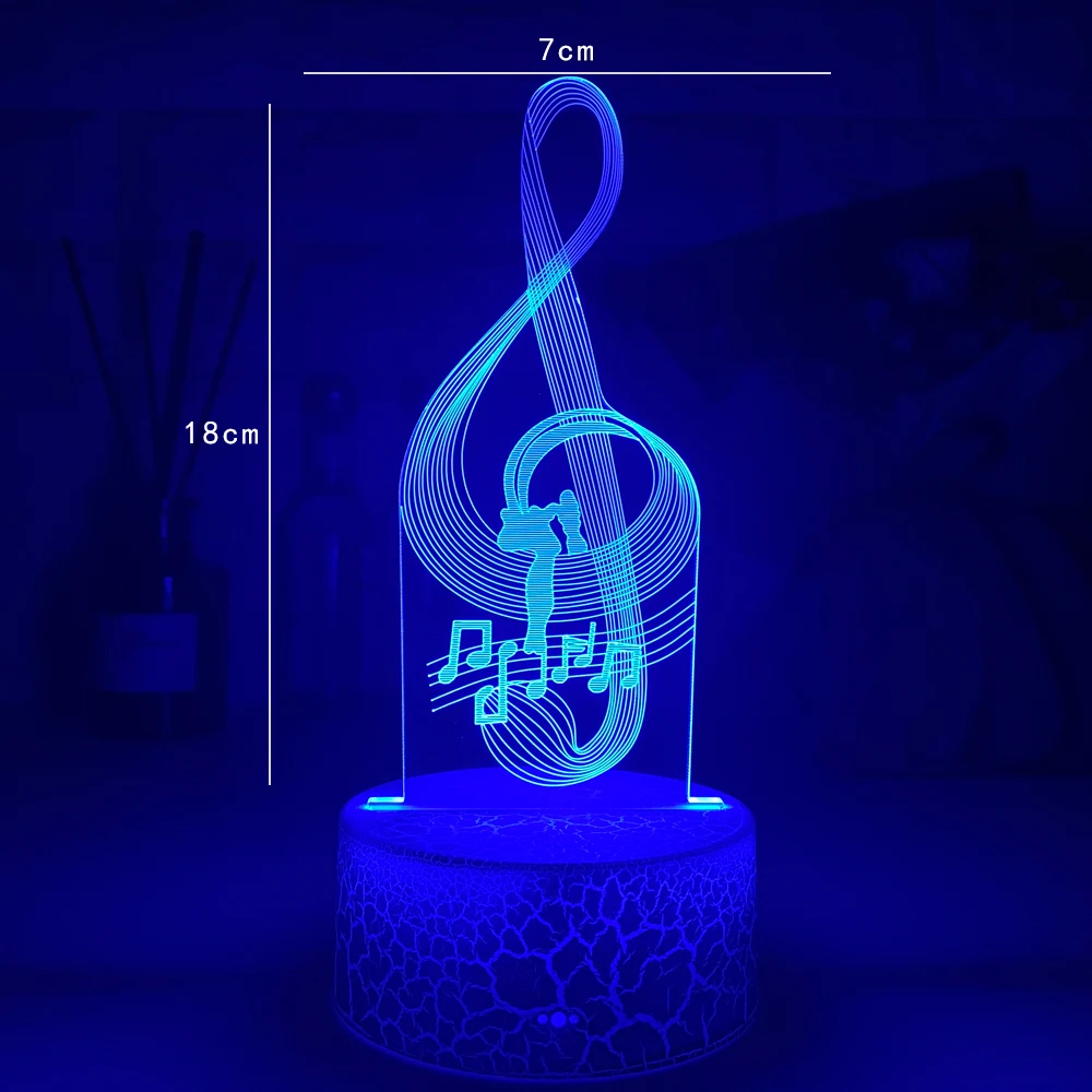 Новейший детский ночник с 3d иллюзией, голограмма музыкальных нот, светильник со светодиодным сенсорным датчиком, цветные прикроватные лампы с питанием от Usb и аккумулятора