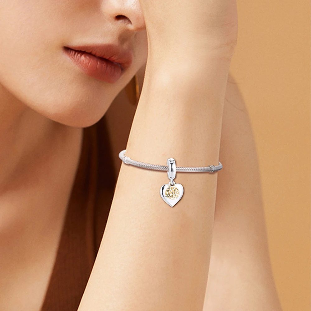 Подходит для браслетов Pandora DIY 14K реальное золото семейное дерево серебро 925 дюймов подвеска для мам сердце подвеска подарок для друзей 021398K