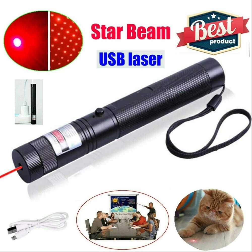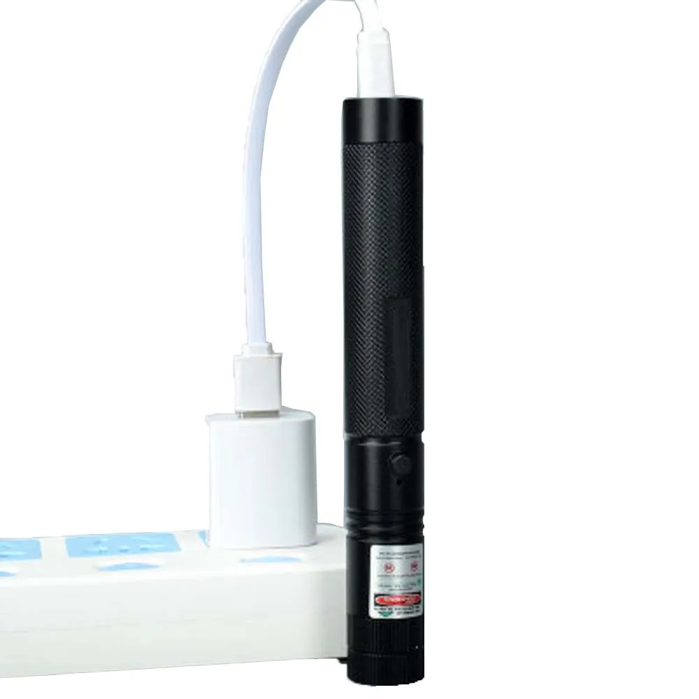 Лазерная указка высокой мощности, USB, 5 мВт, яркий зеленый красное лазерное устройство, инструмент для выживания, луч света + батарея 18650