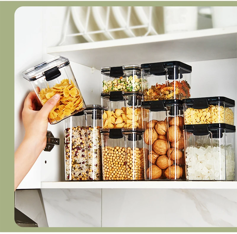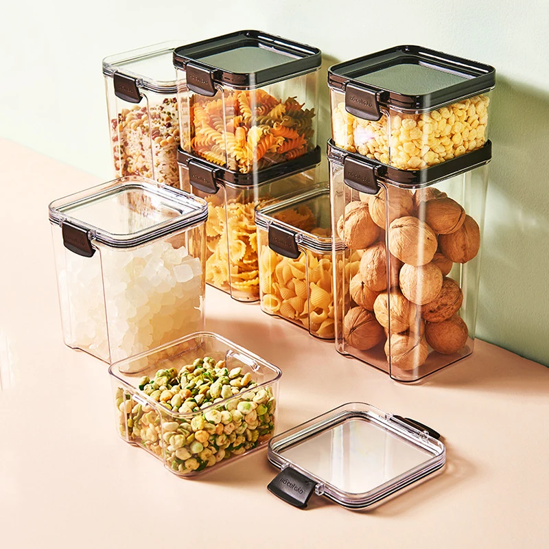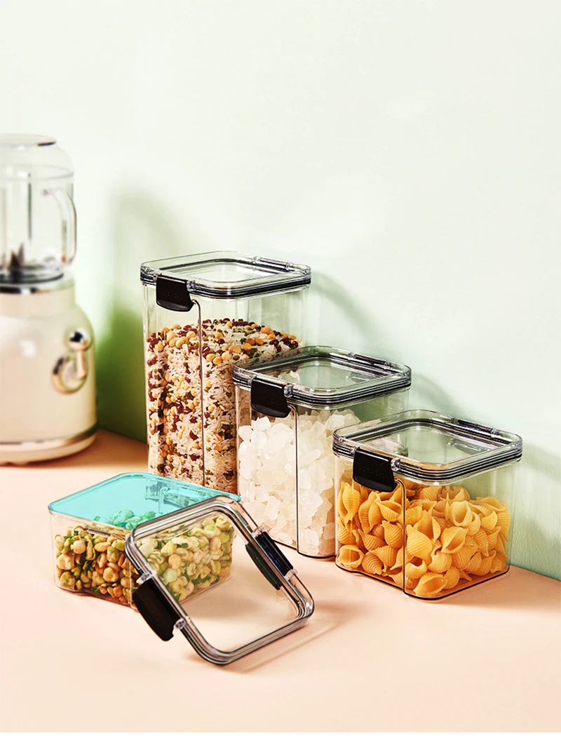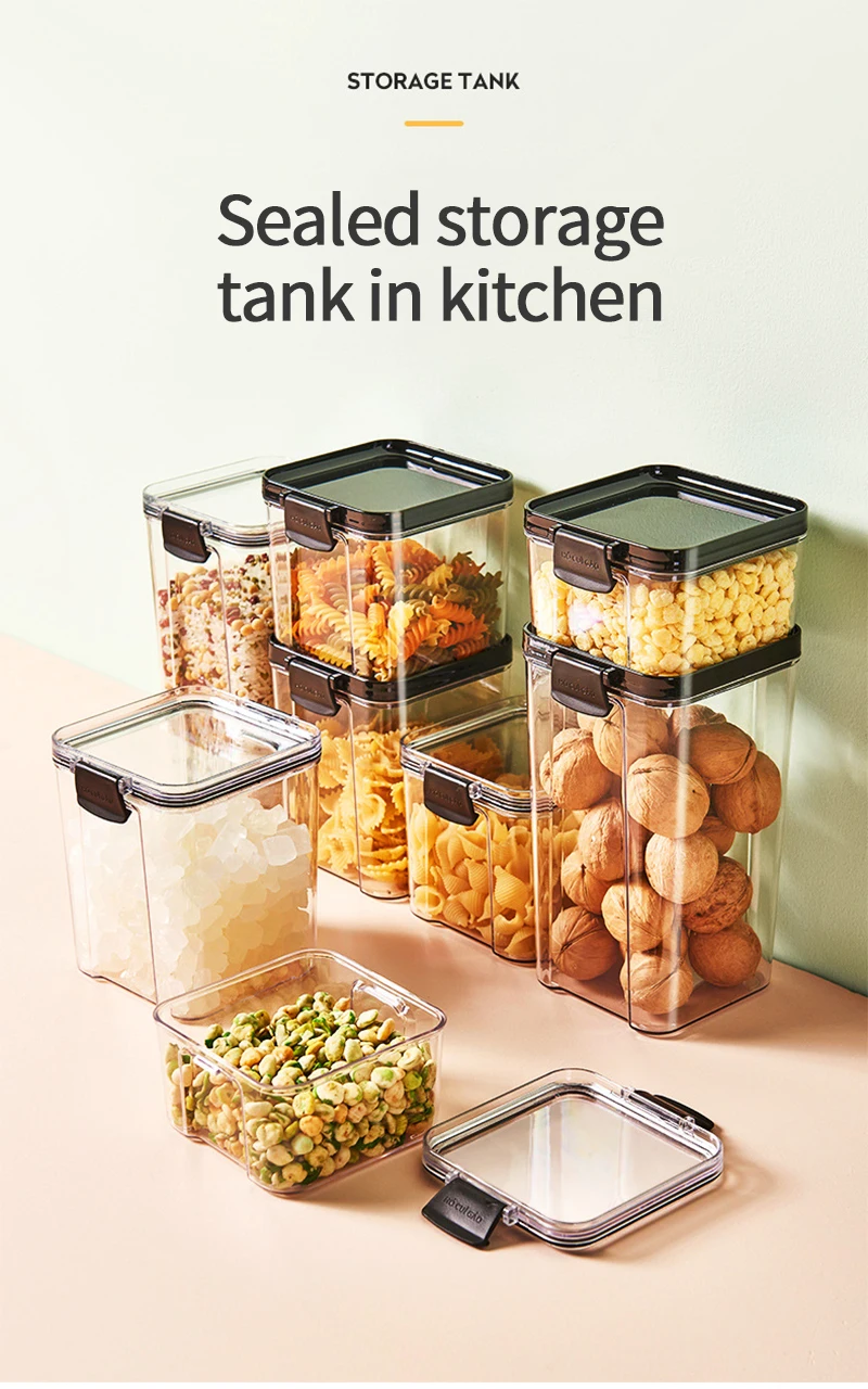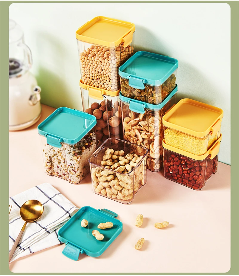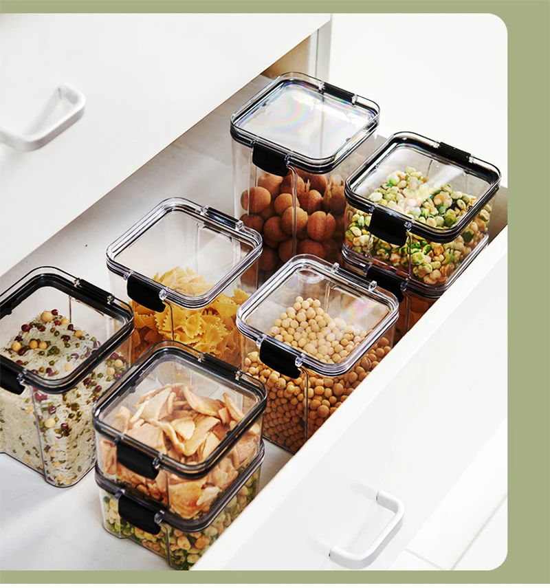 Прозрачные квадратные банки для хранения еды, коробка для сохранения свежести, кухонные коробки для хранения зерна, органайзер для закусок, сухофруктов, контейнер