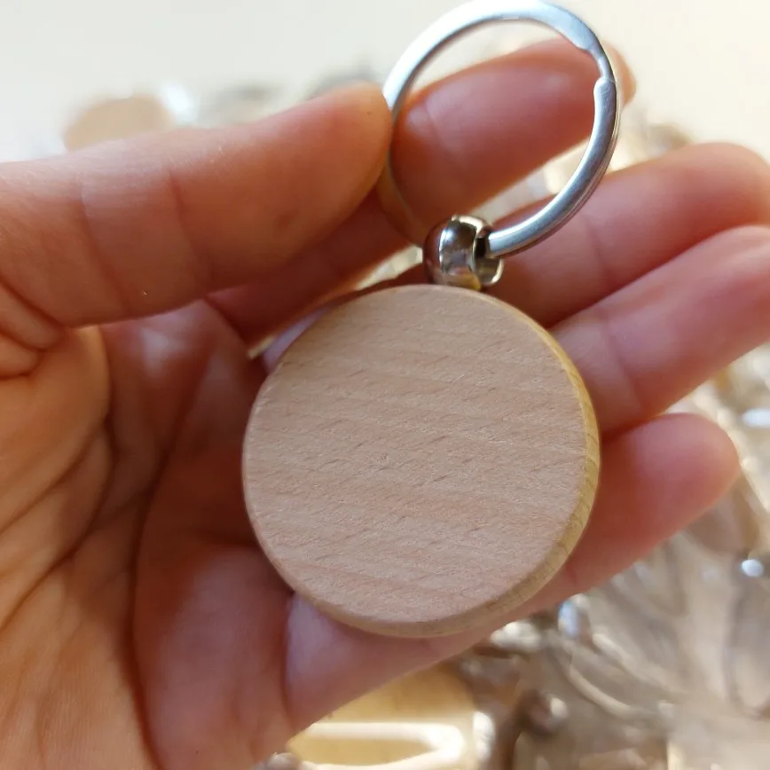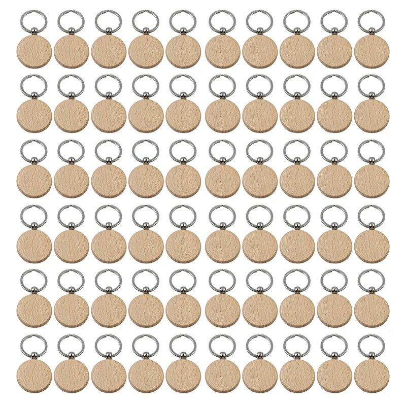 Пустые круглые деревянные брелки для ключей, 60 шт., деревянные брелки сделай сам, брелки для ключей с гравировкой, подарки сделай сам