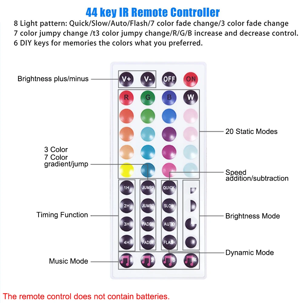 Умный Bluetooth 5050 RGB светодиодный светильник с полосками s 16,4 футов 32,8 футов 49,2 футов управление приложением светодиодный светильник с полосками набор цветов меняющий ленточный светильник s 12 В DC ПИТАНИЕ музыка синхронизация веревка светильник s комплект с 44 клавишами ИК-пульт вечерние украшения для домаОписание:Особенности:16,4/32,8/49,2 фута ленточный светильник s с 90/180/270 5050 SMD RGB светодиодами, достаточно долго, чтобы достичь вокруг вашей комнаты и достаточно яркий, чтобы светильник все место вверх.В приложении с лаконичным интерфейсом цвета можно изменить по команде, а также с регулируемой скоростью, заданными режимами стиля, 1%-100% общий уровень яркости и настройками таймера.Удобный для управления с Bluetooth APP, 40-ключ ИК-пульта дистанционного управления и простой кран контроллер коробки, сделай сам, более чем 16 миллионов цветов, регулировки яркости и скорость, как вам нравится. Круговой ИК-приемник может получать сигнал от 360 ° в пять метров. (приложение поддерживает IOS 8,0 или выше/Android 4,3 или выше)Со встроенным высокочувствительным микрофоном в трехкнопочном контроллере светодиодные музыкальные огни можно синхронизировать с музыкой и окружающим звуком, хотите ли вы начать сумасшедшие вечерние или побаловать себя захватывающим, интенсивная Компьютерная/видео игра.Можно легко наклеить на сухую, чистую и гладкую поверхность с помощью прилагаемой прочной клейкой ленты. Слишком долго? Благодаря простому вырезу каждого 3 светодиодный индикатор помогает безопасно работать, чтобы получить желаемую длину, не повреждая полосу (не соединяйте ее снова и снова).Вы сможете легко осветить большие пространства ярким, красочным освещением во время праздников, вечеринок или фильмов. Отлично подходит для украшения вашего дома (Е. g. Столовая, кровать, наверху, кухня, стол, сад и гостиные)Спецификация:Входное напряжение: AC100-240V, 50-60 ГцВыходное напряжение: DC12VМодель адаптера: DC12V3AСветодиодный светильник в полоску цвет: RGBКласс водонепроницаемости: IP20-Non-водонепроницаемый, IP65-водонепроницаемыйВодонепроницаемый светодиодный ленточный светильник Длина: 5 м/16,4 фута 1 Катушка, 10 м/32,8 фута 1 Катушка, 15 м/49,2 фута 2 катушкаВодонепроницаемый светодиодный ленточный светильник Длина: 5 м/16,4 фута каждая катушкаСветодиодный ленточный светильник Кол-во светодиодов: 18 светодиодов/мМощность: 7,5 Вт/мКак подключить светильник:В первую очередь связаться с красный, зеленый и синий светодиодный светильник панели 4-контактный разъем, а затем Подключитесь к соединительное устройство адаптер постоянного тока. Пожалуйста, поместите батарею CR2032 на заднюю часть инфракрасного пульта дистанционного управления или загрузите приложение, чтобы подключить светильник через Bluetooth, чтобы он мог работать.Посылка включает в себя:1 или 2 или 3 * RGB светодиодный светильник1X 4 контактный разъем1X адаптер питания1X Мини-контроллер Bluetooth1X 44Key IR пульт дистанционного управления (батарея CR2032 не входит в комплект)