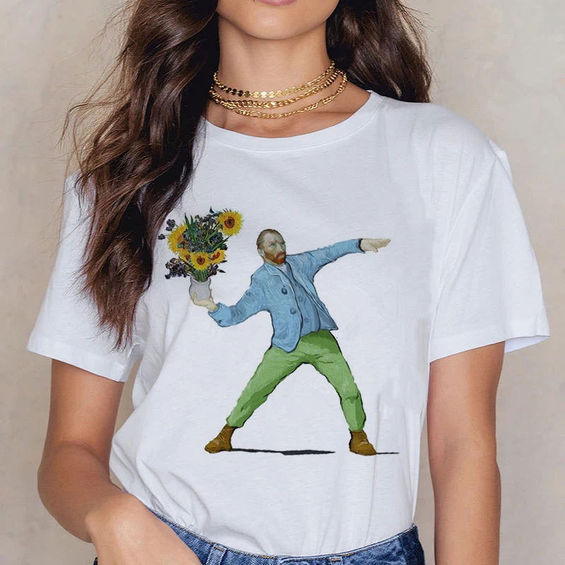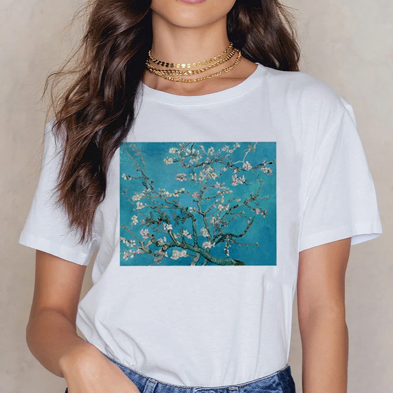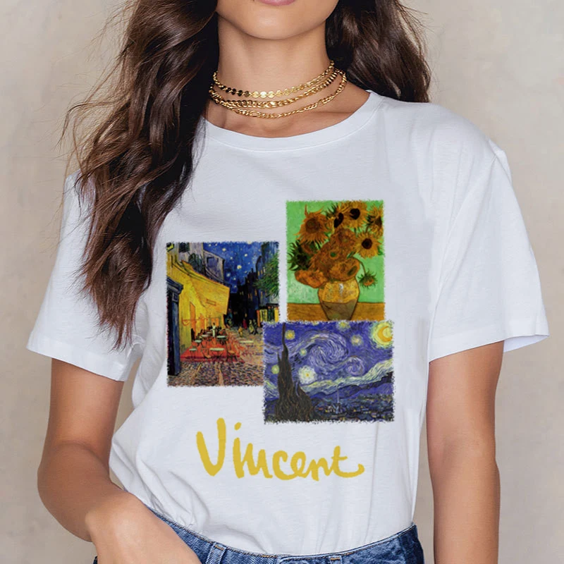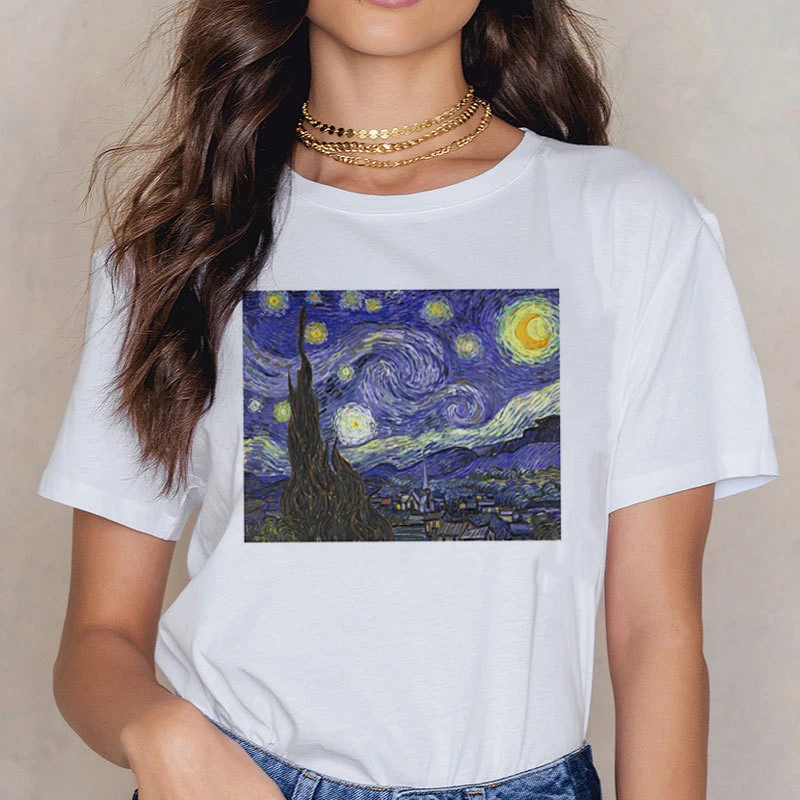 Футболка с изображением Ван Гога, женские футболки для пар, милые футболки с рисунком, женская уличная одежда, повседневная одежда в стиле Харадзюку, кавайная футболка в стиле Харадзюку