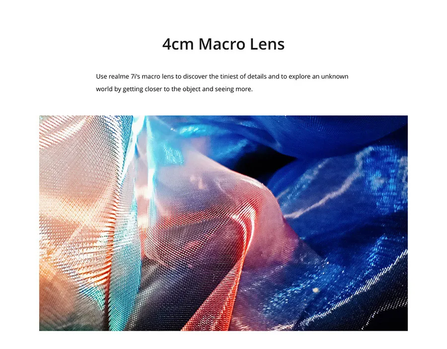 Realme 7i оснащен большим Полноразмерным мини-экраном 16,5 см (6,5 дюйма) с соотношением 20:9,