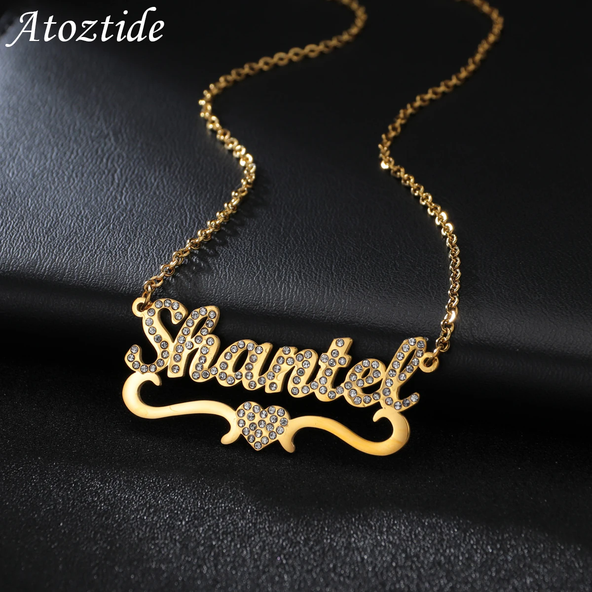 Atoztide Мода пользовательских персонализированные имя ожерелья из нержавеющей стали сердца и буквы с украшением в виде кристаллов кулон для женщин ювелирные изделия дропшиппинг