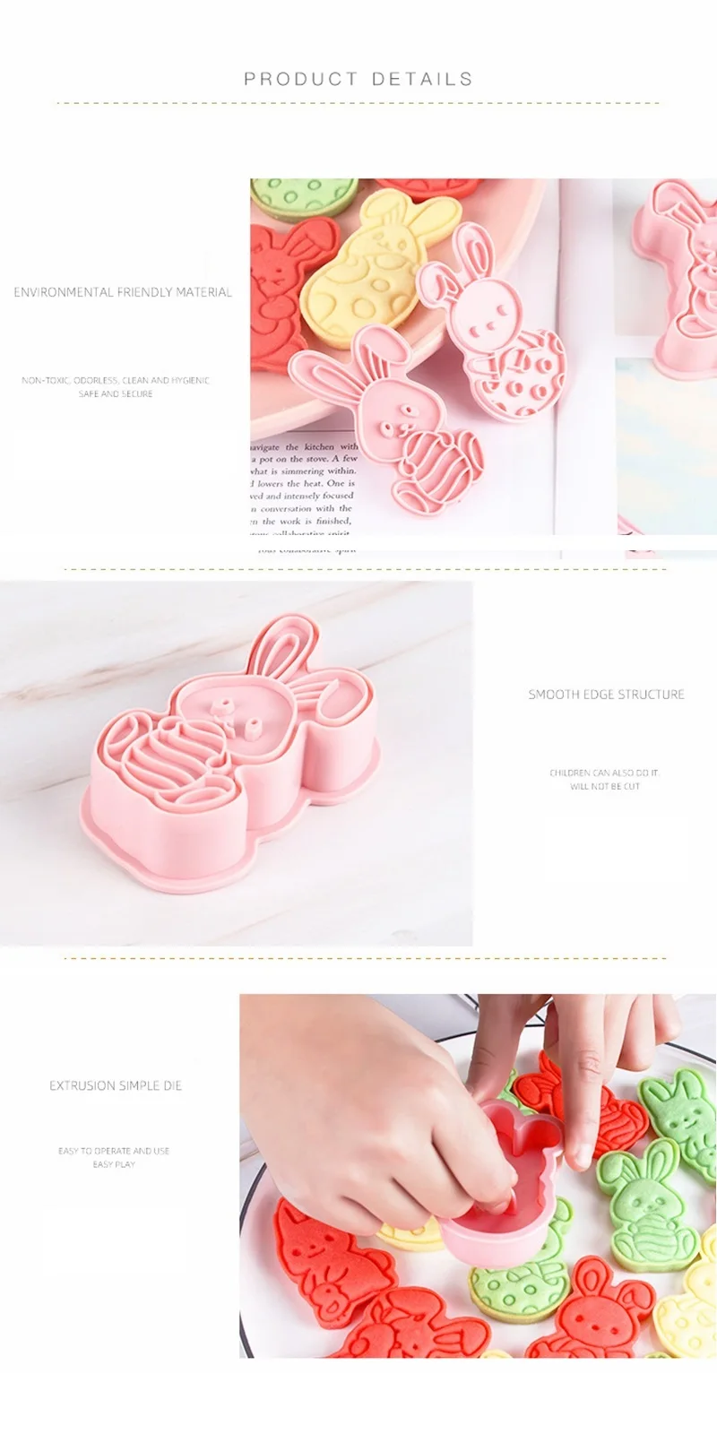 6 шт.компл. пластиковая Пасхальная форма для печенья пищевого класса, форма для яйца, кролика, бисквита, резак, поршень, штамп, инструмент для помадки, торта, кухонные аксессуары