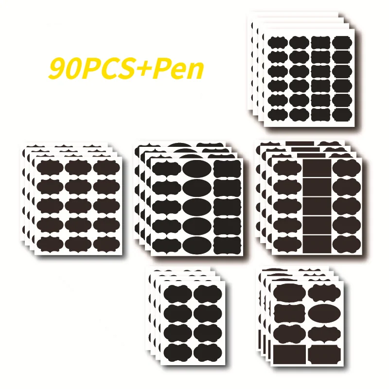 90 шт.набор, водостойкая наклейки в виде меловой доски Наклейка для бутылки с специями, емкость для хранения пищи, наклейки в виде меловой доски, кухонная утварь