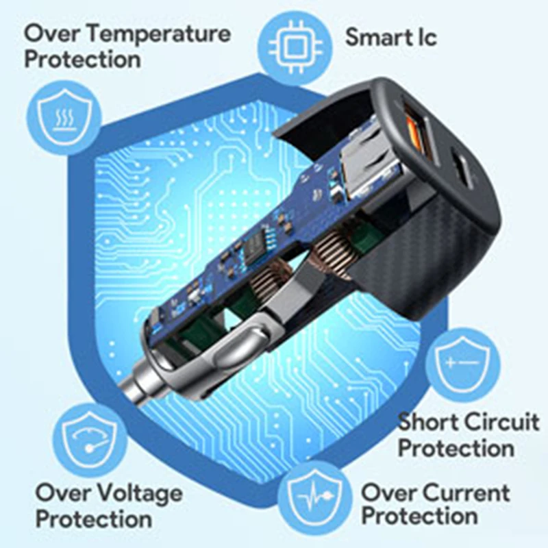 Автомобильное зарядное устройство GETIHU PD 30 Вт с двумя USB-разъе...