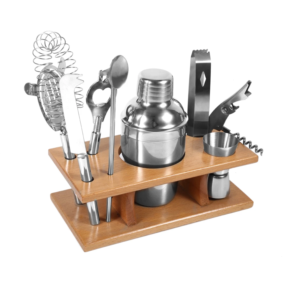8 шт Нержавеющаясталь шейкер Смеситель для того чтобы поить с деревянная подставка держатель питьевой инструмент барные сеты, отлично подходит для дома, баров и вечеринок