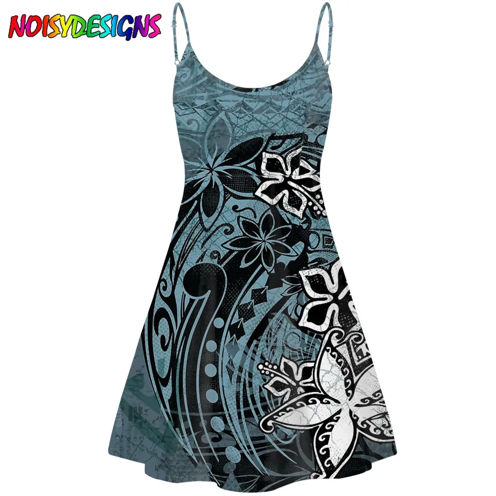 NOISYDESIGNS полинезийская гибискус с этническим принтом летнее платье для женщин с подтяжками Мини платья Цветочный Принт без рукавов Пляжное платье