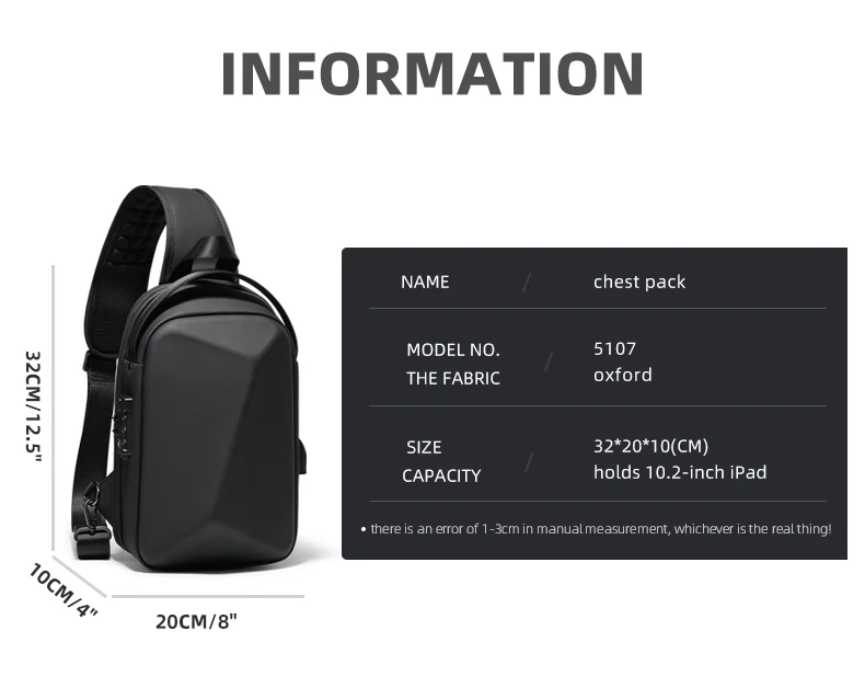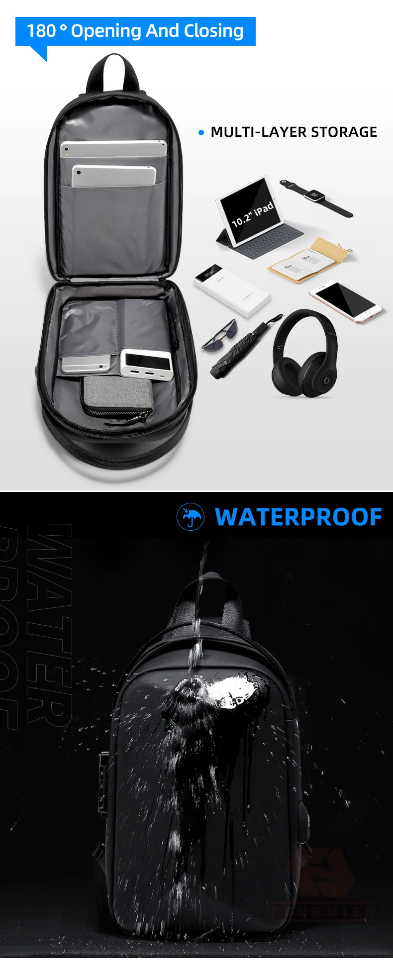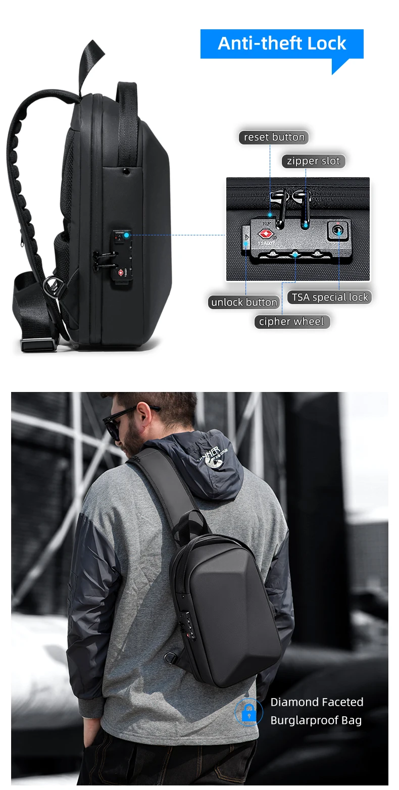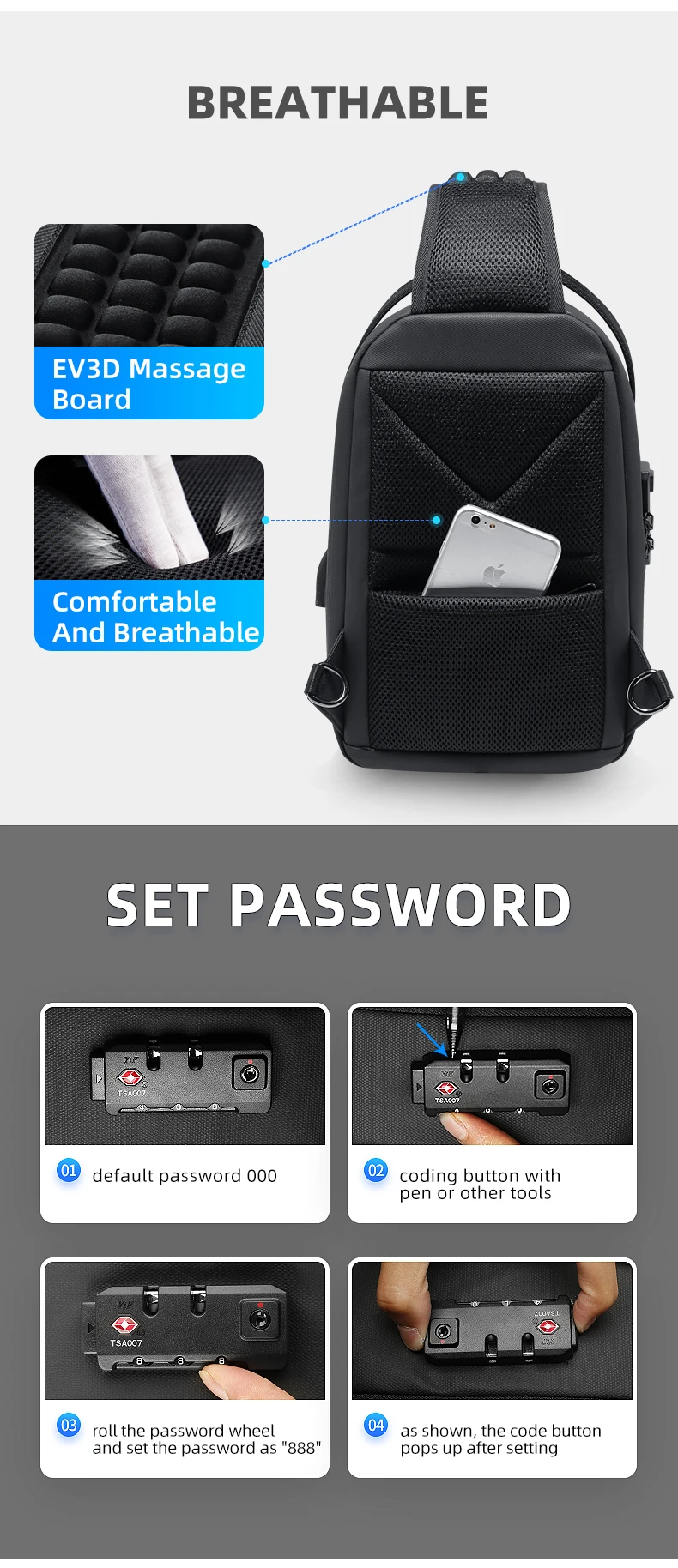 Item Name2Chest Bags Anti Theft Password lock USB Charging