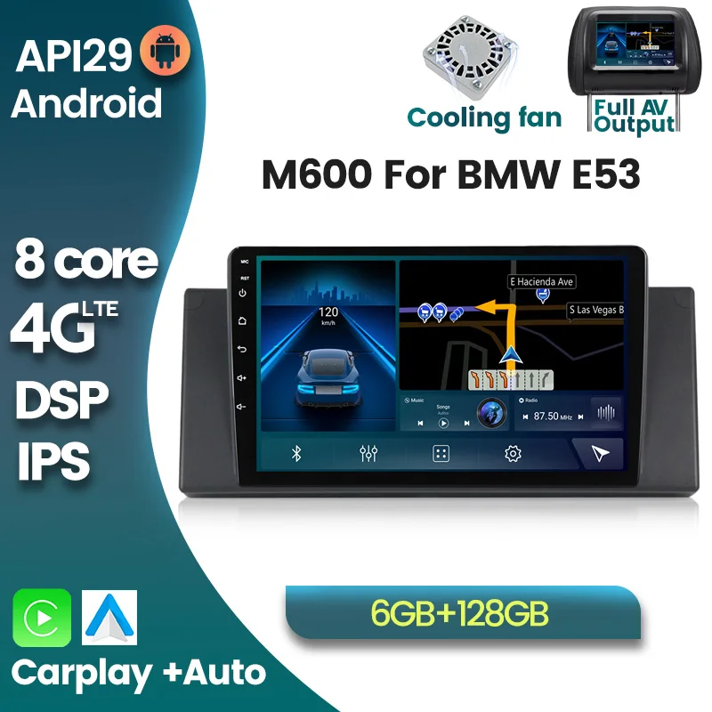 Автомобильный стерео DVD-плеер, HD 1280*720, Android 10,0, 4G, для BMW X5 E53 E39, GPS, аудио-навигация, мультимедийный экран, головное устройство Carplay