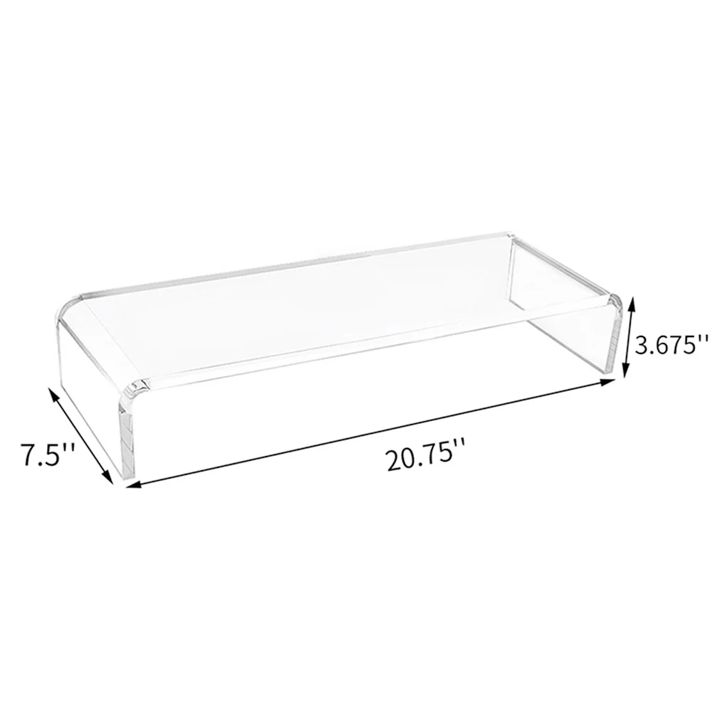 Особенности:1. Поднимите компьютер и организуйте рабочее пространство в кратчайшие сроки и без какой-либо процедуры настройки, эта цельная компьютерная подставка в дизайне uni body с кристально чистой платформой и изысканно отполированным акриловым материалом дополняет любой декор дома или офиса.2. Подъем вашего ПК выше, чем у обычной настольной подставки, этот акриловый подъем способствует хорошей осанке при подъеме более 3 дюймов, соответствует уровню глаз, поможет вам уменьшить нагрузку на шею и глаза, И сделайте вашу рабочую станцию более удобной.3. Эргономичная конструкция и жесткая конструкция дарят вам большую уверенность в поддержке различных тяжелых гаджетов до 50 Ib, таких как ТВ Райзер для вашего нового светодиодного экрана, iMac подставка для продуктов Apple, подставка для принтера для полки и настольная полка для книг и аксессуаров.4. Сводит к минимуму беспорядок и экономит ваше ценное пространство на рабочем столе с этой расширенной акриловой подставкой, что означает больше места под ним для хранения полноразмерной клавиатуры и мыши; используйте как настольную подставку, которая создает слой и упорядочивает документы и при этом является уникальной подставкой для компьютерного стола.5. Как дома, так и в офисе, этот Универсальный Подставка для компьютера отличается высокой портативностью и многочисленными функциями в качестве гладкой подставки для ПК, включая функции полки для телевизора, под которой можно легко хранить кабельную коробку или провода, подставка для ноутбука для сопряжения с дополнительной клавиатурой и даже подходящей к другой акриловой6. С помощью подставки вы можете отрегулировать высоту компьютера, чтобы избежать усталости шейного отдела позвоночника и повысить эффективность вашей работы.Спецификация:Название: акриловая компьютерная подставкаМатериал: акрилРазмер: около 20,75*7,5*3,675 дюймов (53*19*9 см)Вес: около 830 гЦвет: прозрачныйКомплектация:
