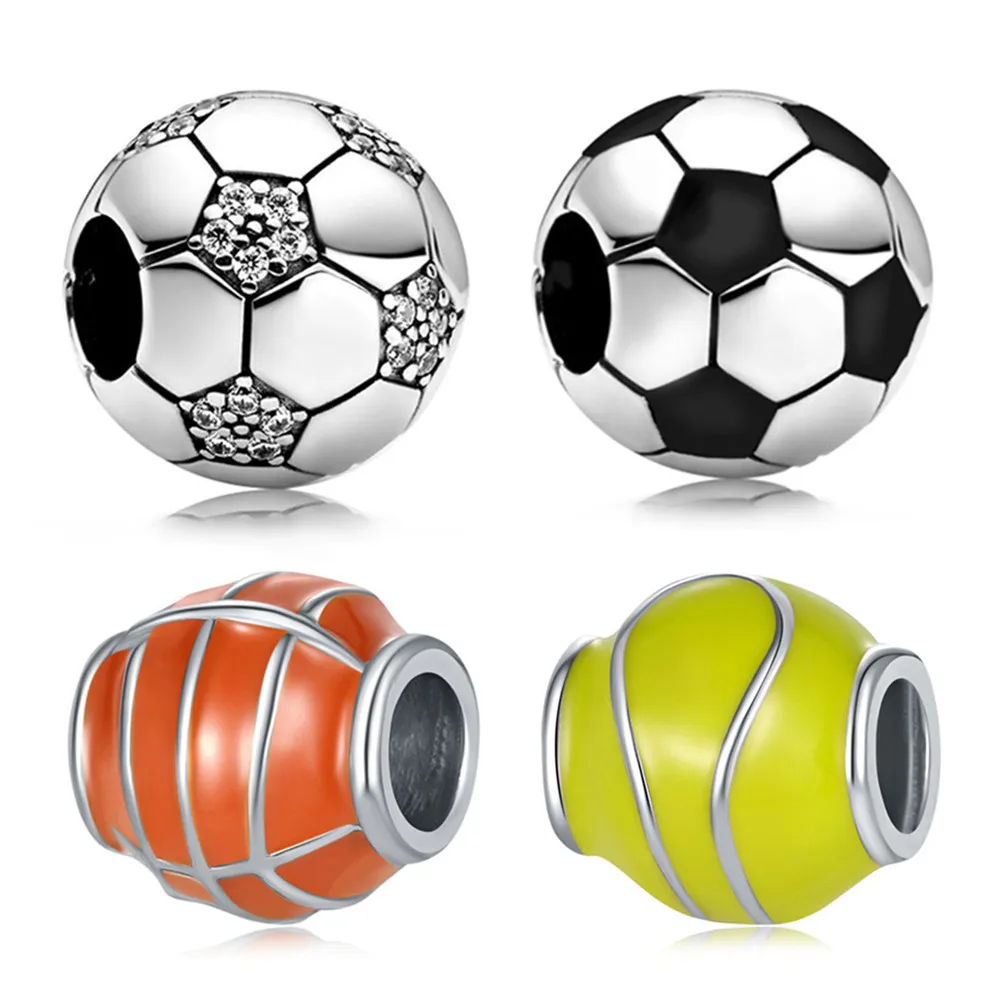 1 шт. новый милый мини-кулон в виде баскетбольного мяча DIY бусины подходят для оригинального браслета Pandora Шарм женский ювелирный подарок