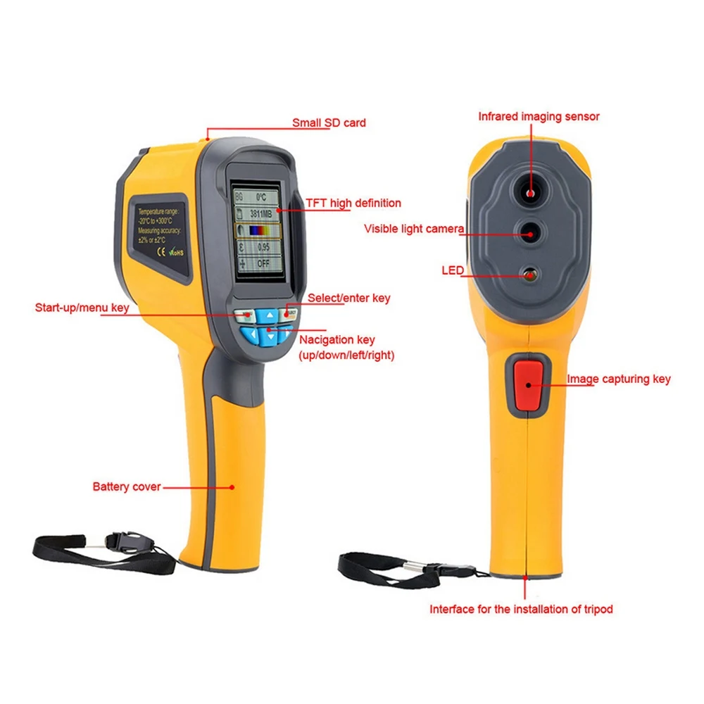 Особенности:1. Инфракрасная тепловизионная камера может смешивать Видимый светильник и инфракрасные изображения.2. Разрешение инфракрасного изображения/Видимый светильник: 3600/1024 (HT-02D) пикселей/0, 3 миллиона пикселей.3. Инфракрасное устройство изображения является профессиональным, точным и эффективным.4. Используется для ремонта автомобильного двигателя, обслуживания линии трансформатора, технического обслуживания кондиционера и т. д.5. Наш Инфракрасный Тепловизор может вращать тепловое изображение на первоначальном изображении, чтобы быстро найти проблемную область.Характеристики проекта:Дисплей: 2,8-дюймовый цветной ДисплейРазрешение: 60*60Общее количество пикселей: 3600FOV/кратчайшее Фокусное расстояние: 20 ° × 20 °Тепла Чувствительность: 0,15 ℃Метод измерения: измерение температуры с инфракрасным фокусным расстояниемДиапазон температур: -20 ℃-300 ℃ (-4 ℉-572 ℉)Точность измерения: ± 2 ℃Диапазон длины волны: 8-14 мкмЧастота изображения: 8 ГцИзлучение: 0,1-1,0/регулируемыйРежим фокусировки: фиксированныйПалитра: Железный цвет, Радужный цвет, черный и белыйХранение изображений: sd-картаФормат файла: JPGНастройки управления: Настройка единицы/язык/формат даты и времени/автоматическое выключениеБатарея Тип: 3,7 V перезаряжаемая литиевая батарея Батарея (не прилагаются в комплект поставки)Напряжение адаптера: выход DV 5VРабочая температура: 0 ℃-50 ℃Температура хранения: -40 ℃-70 ℃Влажность: <90% относительной влажностиВибрация: 2G, IEC60068-2-6Сопротивление падению: 2 мРазмер: 230 × 80 × 52 ммВес: 410 гПосылка включает в себя: хост * 1, тканевый мешок * 1, руководство * 1
