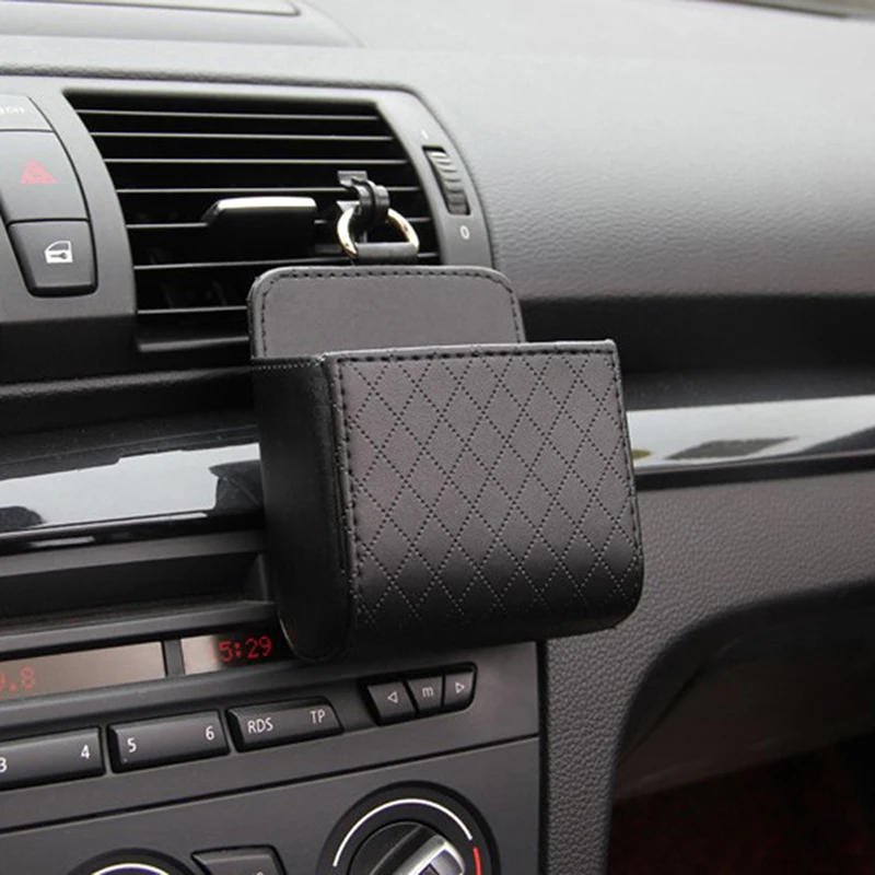 Автомобильная сумка для хранения, устанавливаемое на вентиляционное отверстие в салоне автомобиля приборной панели аккуратные подвесной кожаный Органайзер ящик очки для мобильного телефона, аксесуары крытого вагона