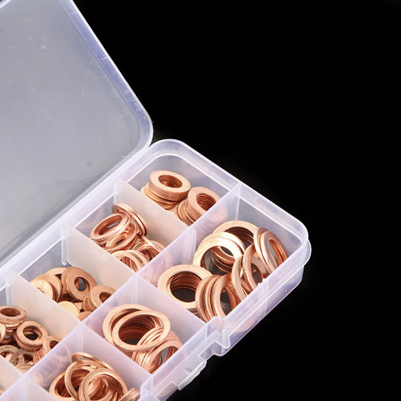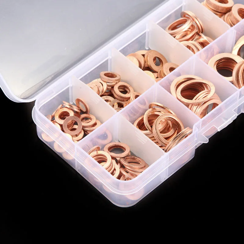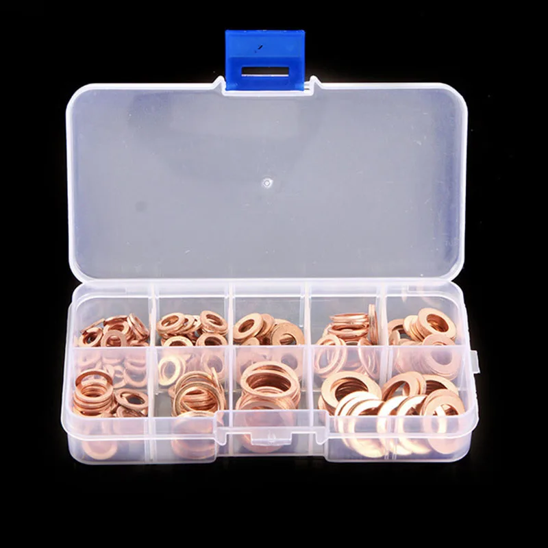 Набор медных шайб 200 шт., уплотнительные гайки и болты в ассортименте с коробкойM8M10M12M14 для автомобиля, лодки, моторного масла