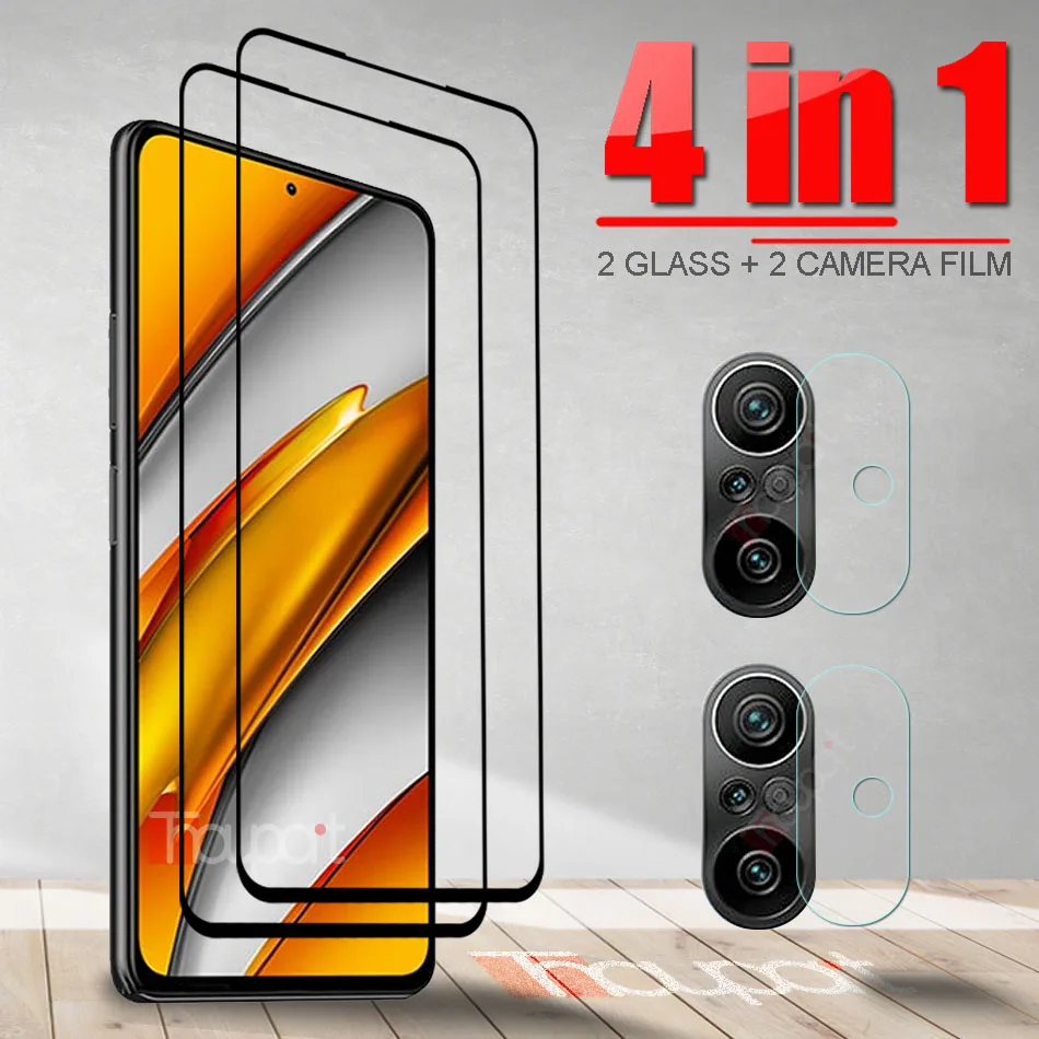 4 в 1 Закаленное стекло для Xiaomi Poco F3 X3 NFC Poco M3 F3 F2 M2 Pro, защита экрана, пленка для объектива камеры Poco X3 Pro стекло