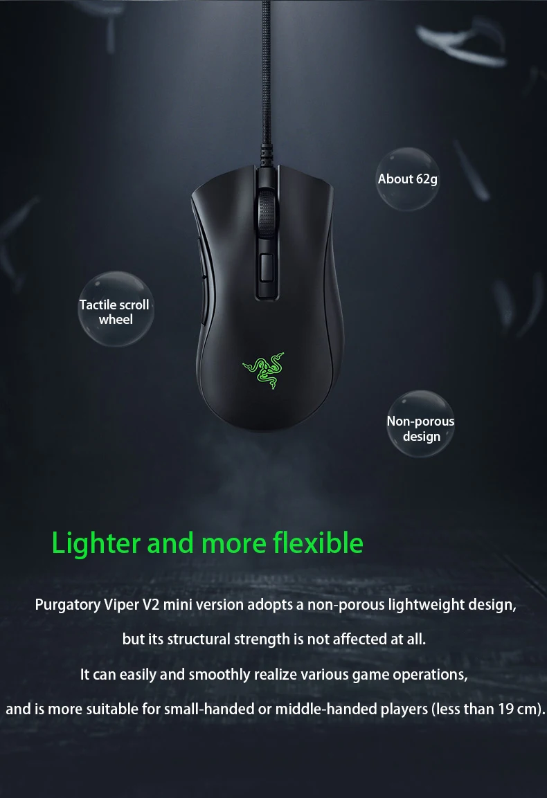 Проводная игровая мышь Razer purgarium Viper V2 Mini Edition, 8500DPI, оптический сенсор с 5 независимыми программируемыми кнопками, эргономичный дизайн