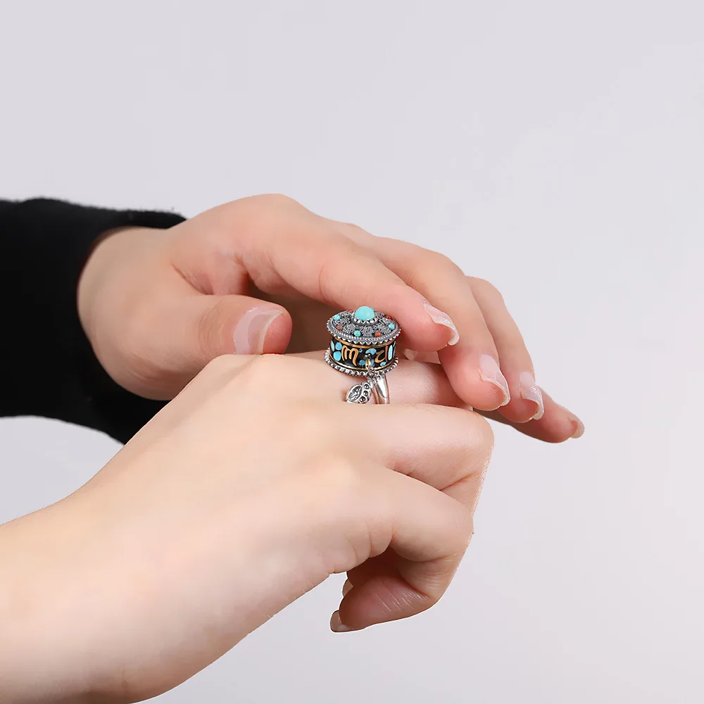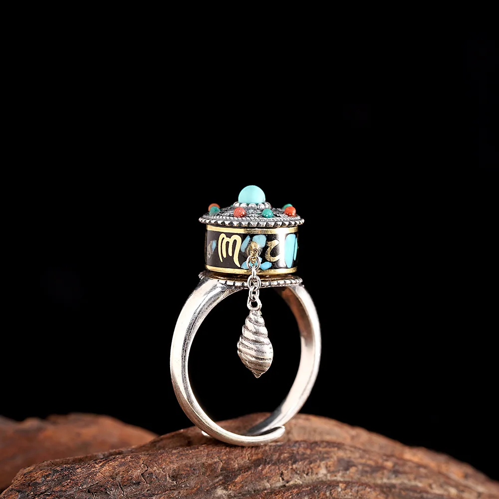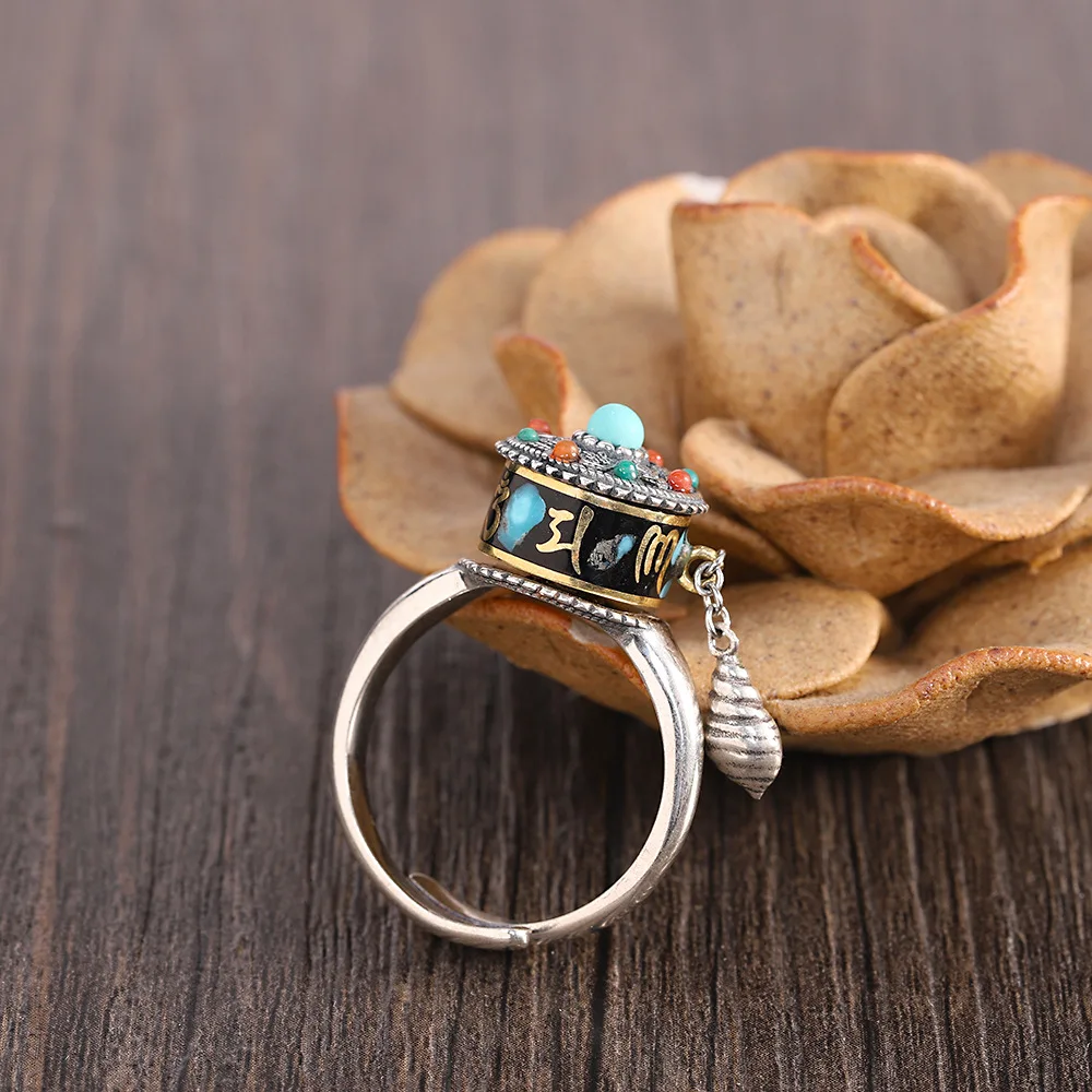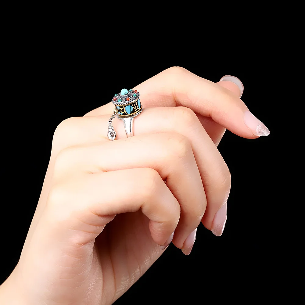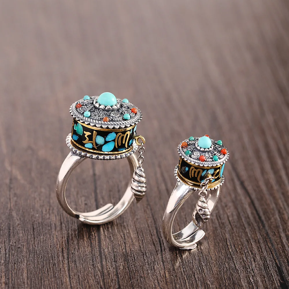 Uglyless 2 размера вращающиеся молитвенные кольца для женщин Тибетский буддист Ювелирные наборы экзотические бирюзовые подвески 6 слов мантра