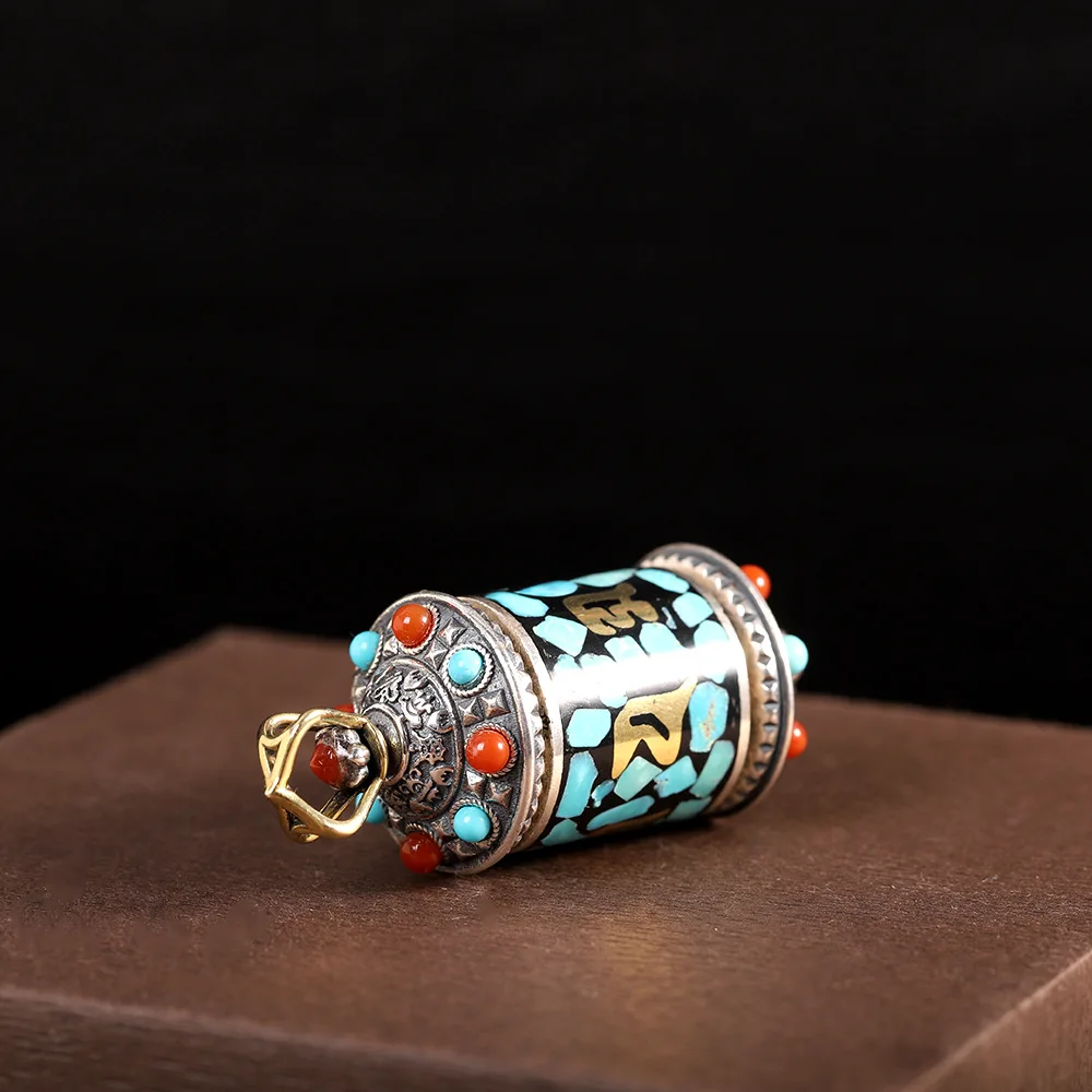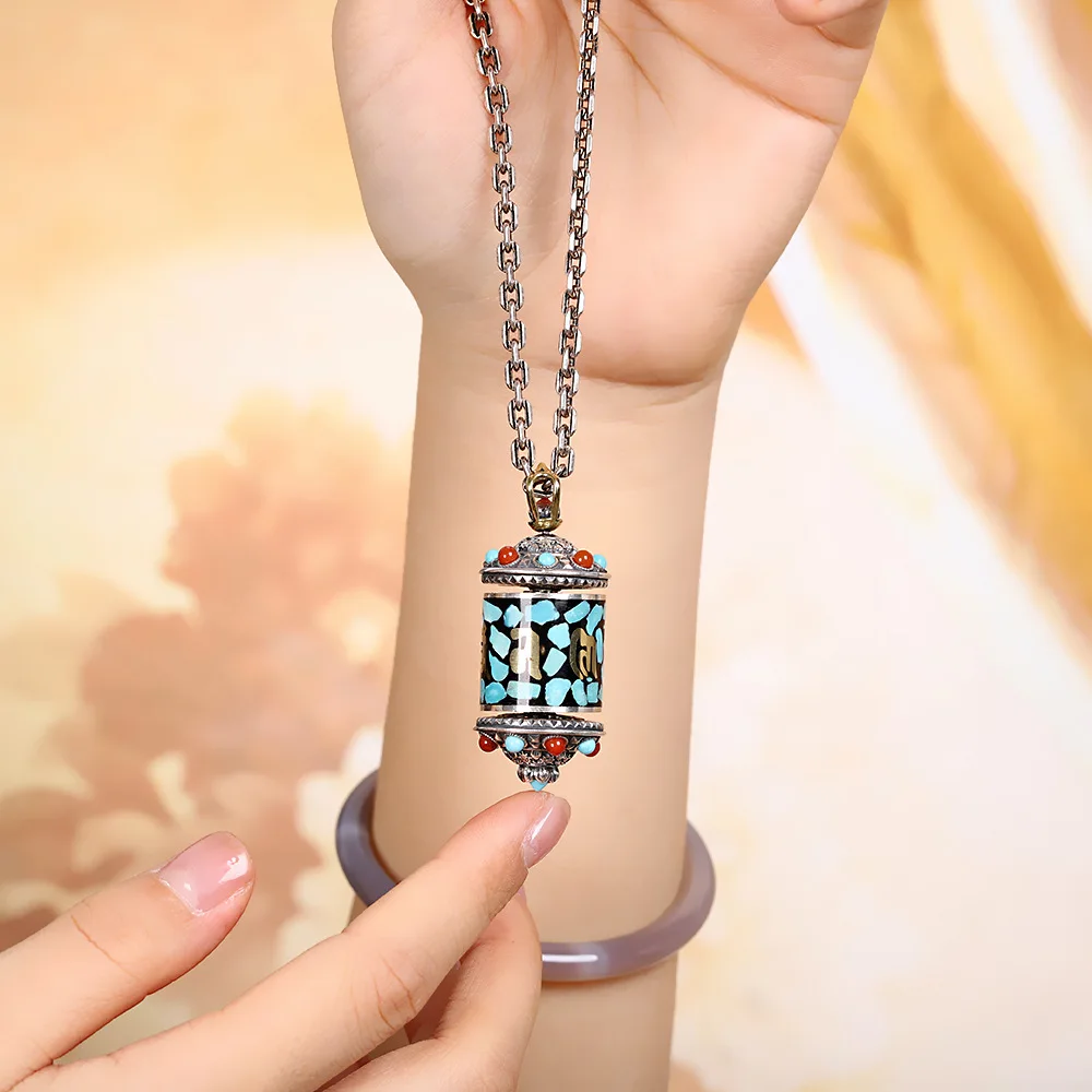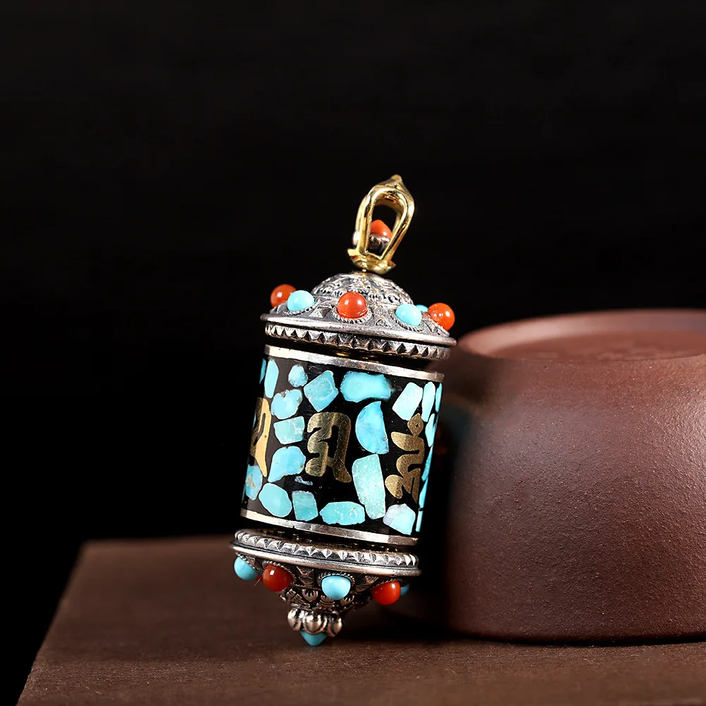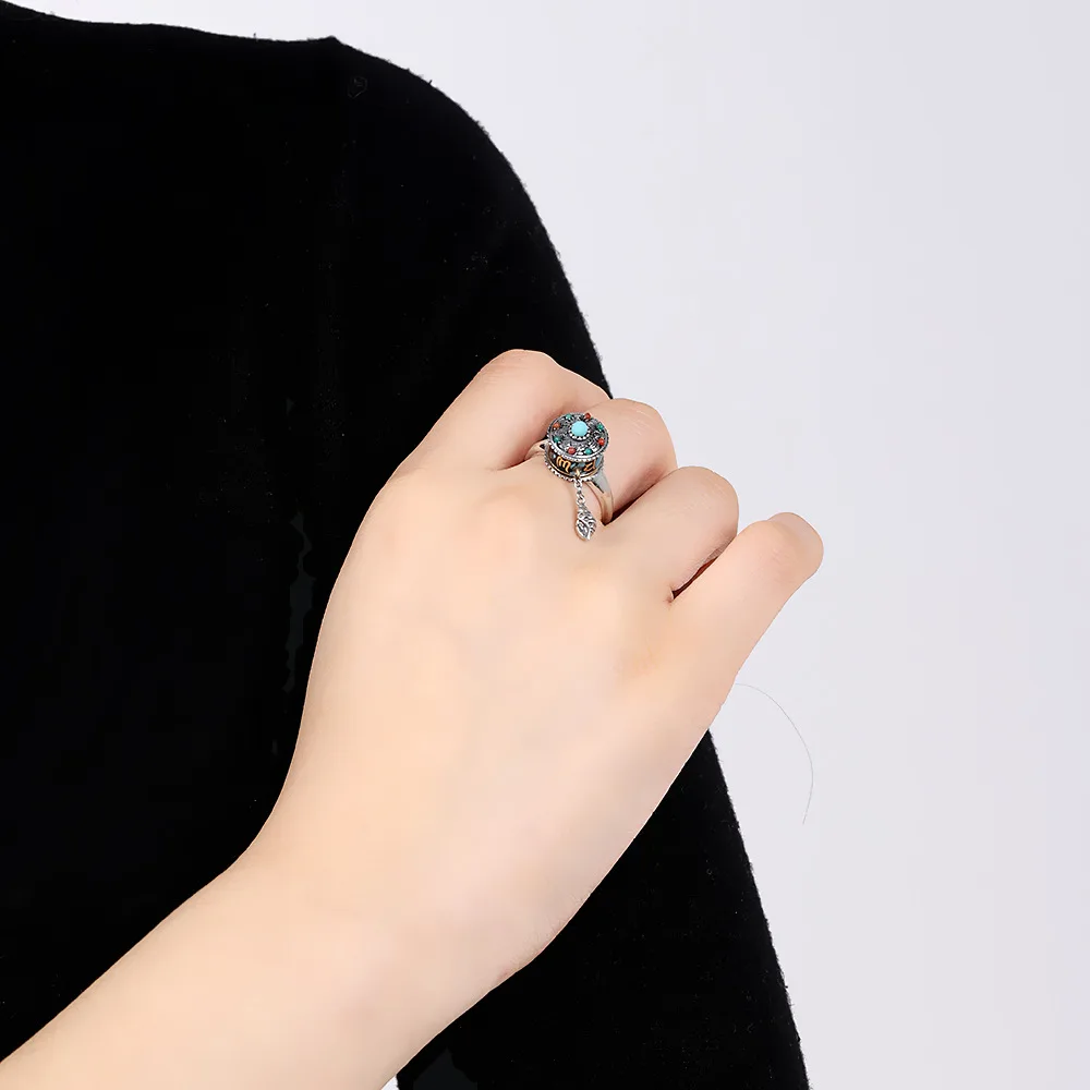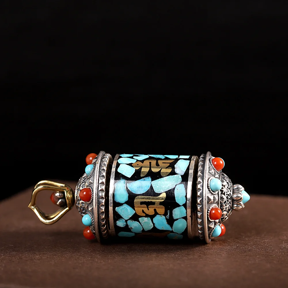 Uglyless 2 размера вращающиеся молитвенные кольца для женщин Тибетский буддист Ювелирные наборы экзотические бирюзовые подвески 6 слов мантра